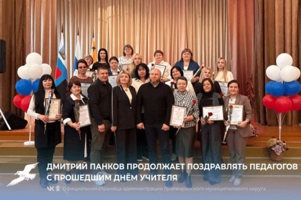 Глава муниципалитета вновь встретился с учителями школы имени В.Г. Шухова, Дунайской средней школы, центра детского творчества и сотрудниками управления образования, чтобы вручить им заслуженные награды.Ольга Устинова, директор школы, провела главу по...