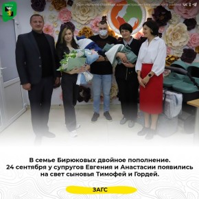 24 сентября у супругов Евгения и Анастасии появились на свет сыновья Тимофей и Гордей. Теперь у старшей дочки Амелии сразу два младших брата, которых она так ждала.По доброй и трогательной традиции нашего района, в честь рождения двойни счастливые...