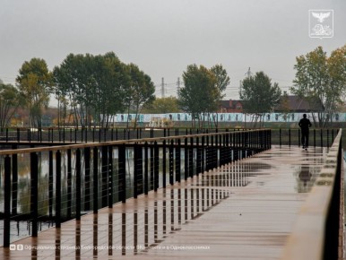 Ежедневно на площадке трудятся более 20 специалистов и 7 единиц техники.Специалисты заложили основания для 1150 метров дорожек, смонтировали настил, установили опоры наружного освещения. Также здесь расчищены гектары зарослей, а берега укреплены...
