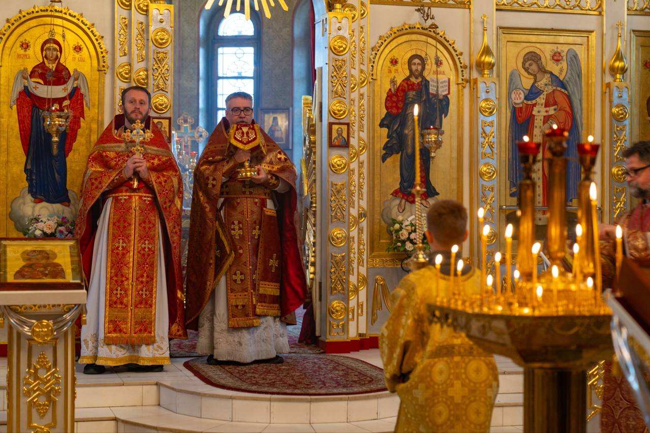 Сегодня в Прохоровке гости из Губкина – воспитанники воскресной школы и священнослужители Храма апостола Иакова во главе с настоятелем храма протоиереем Дмитрием Карпенко. Приветствовал губкинцев благочинный Прохоровского округа протоиерей Александр Кагарлыкский. После встречи в Храме святых апостолов Петра и Павла состоялась служба, во время которой губкинский детский хор пел за Божественной Литургией.