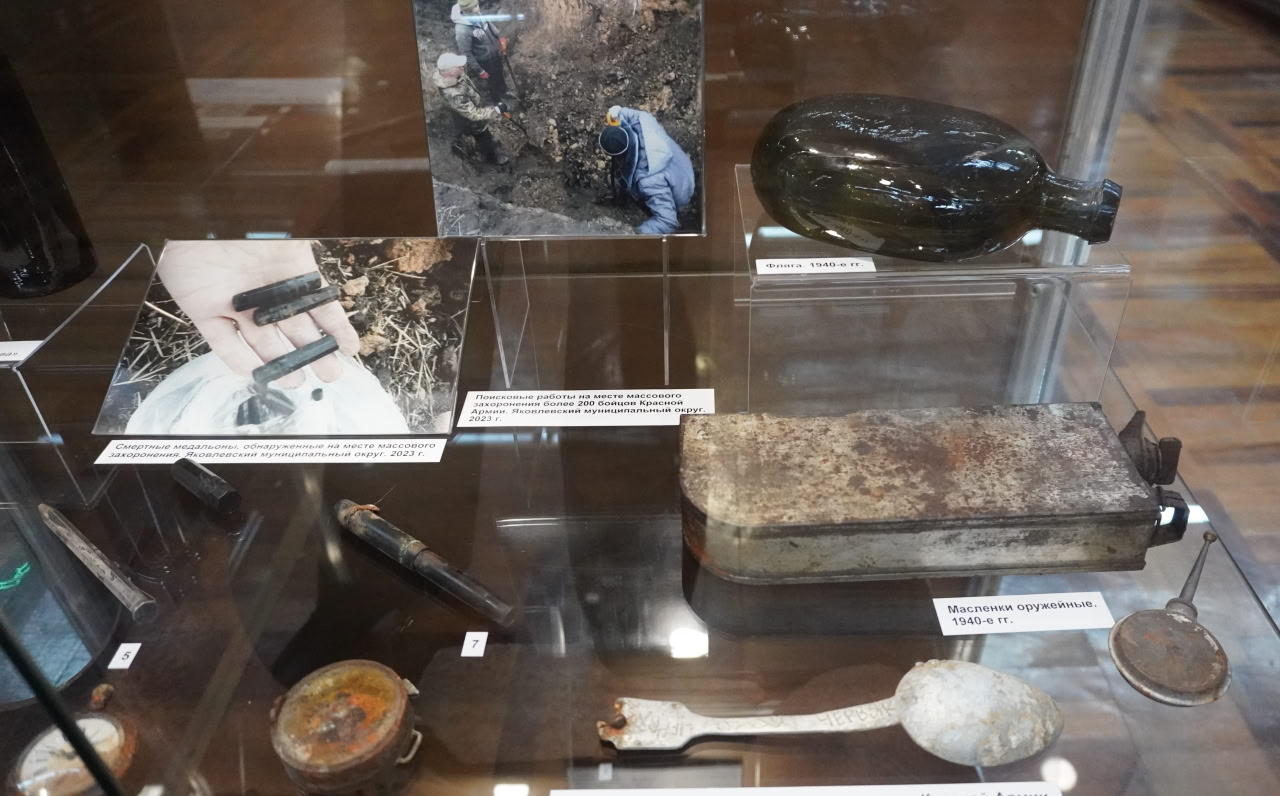 Посетители выставки увидели фотографии, документы, музейные предметы из фондовых коллекций музея, рассказывающие о том, как в мирное время в ходе поисковых работ устанавливаются имена защитников Родины, погибших в боях за Белгородчину. Среди экспонатов артефакты самой кровопролитной войны в истории человечества: фрагменты военной техники и обмундирования, смертный медальон, награды, личные вещи бойцов, обнаруженные на территории региона участниками Историко-поискового клуба «Патриот».