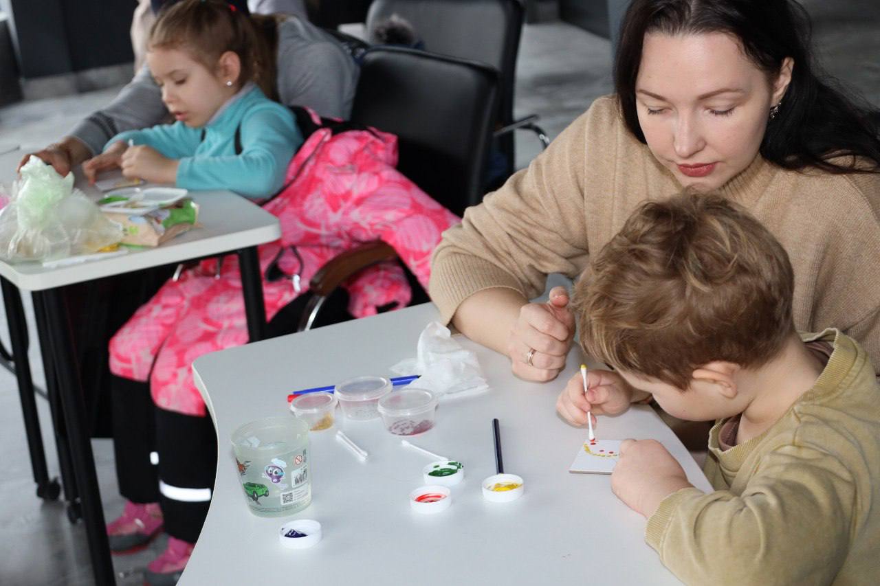 На мастер-классах все желающие создавали открытки, посвящённые теме Дня защитников Отечества, а также магниты «Первый салют» в оригинальной технике.
