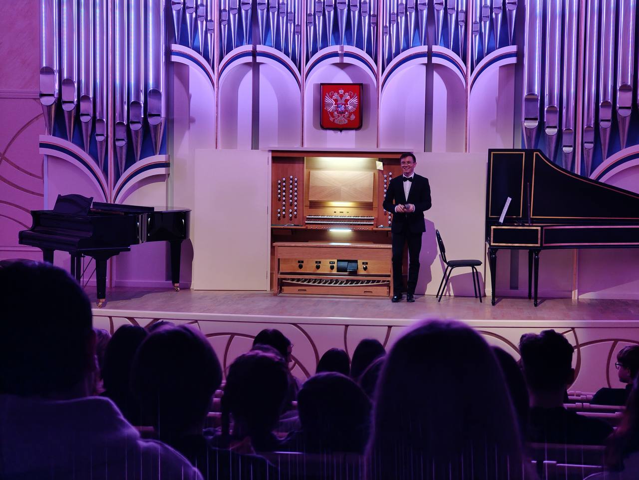 Зачем органу компьютер и несколько клавиатур, в чём секрет органных ботинок, сколько нужно учиться, чтобы стать органистом? Ребята узнали ответы на эти и другие вопросы. Тимур Халиуллин рассказал об устройстве «короля инструментов», принципах его работы и даже провёл небольшой мастер-класс. Можно было не только подняться на сцену и сесть за клавиатуру, но и заглянуть внутрь органа.