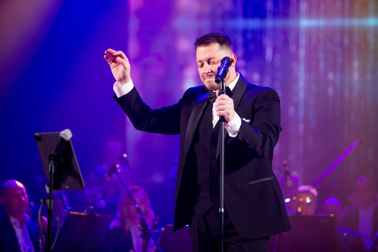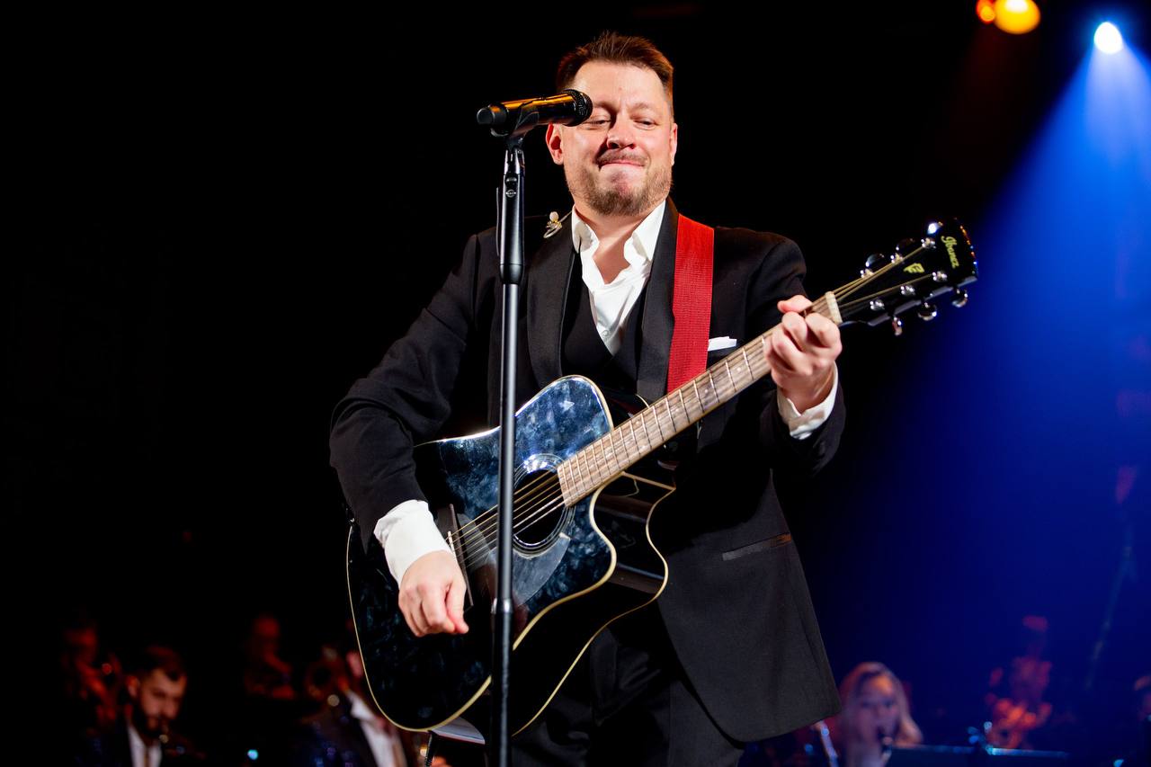 Евгений Добров в сопровождении Концертного оркестра духовых инструментов под руководством главного дирижёра Юрия Меркулова исполнил популярные песни российской и зарубежной эстрады.