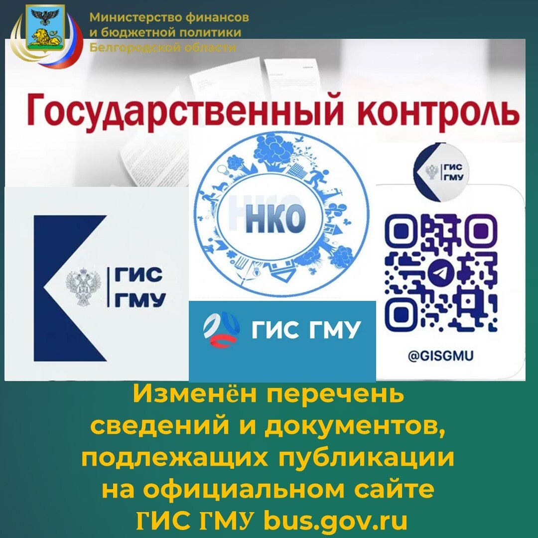 Специалисты контрольного департамента министерства финансов и бюджетной политики Белгородской области информируют о том, что перечень размещаемых на сайте bus.gov.ru документов изменится .