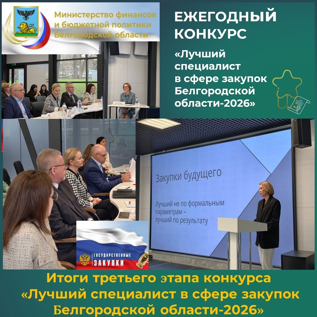 Министерством финансов и бюджетной политики Белгородской области при поддержке МАУК «Культурный центр «Октябрь» и электронной торговой площадки ООО «РТС-Тендер» организован и 10 апреля 2026 года проведён третий этап конкурса «Лучший специалист в сфере закупок Белгородской области-2026».