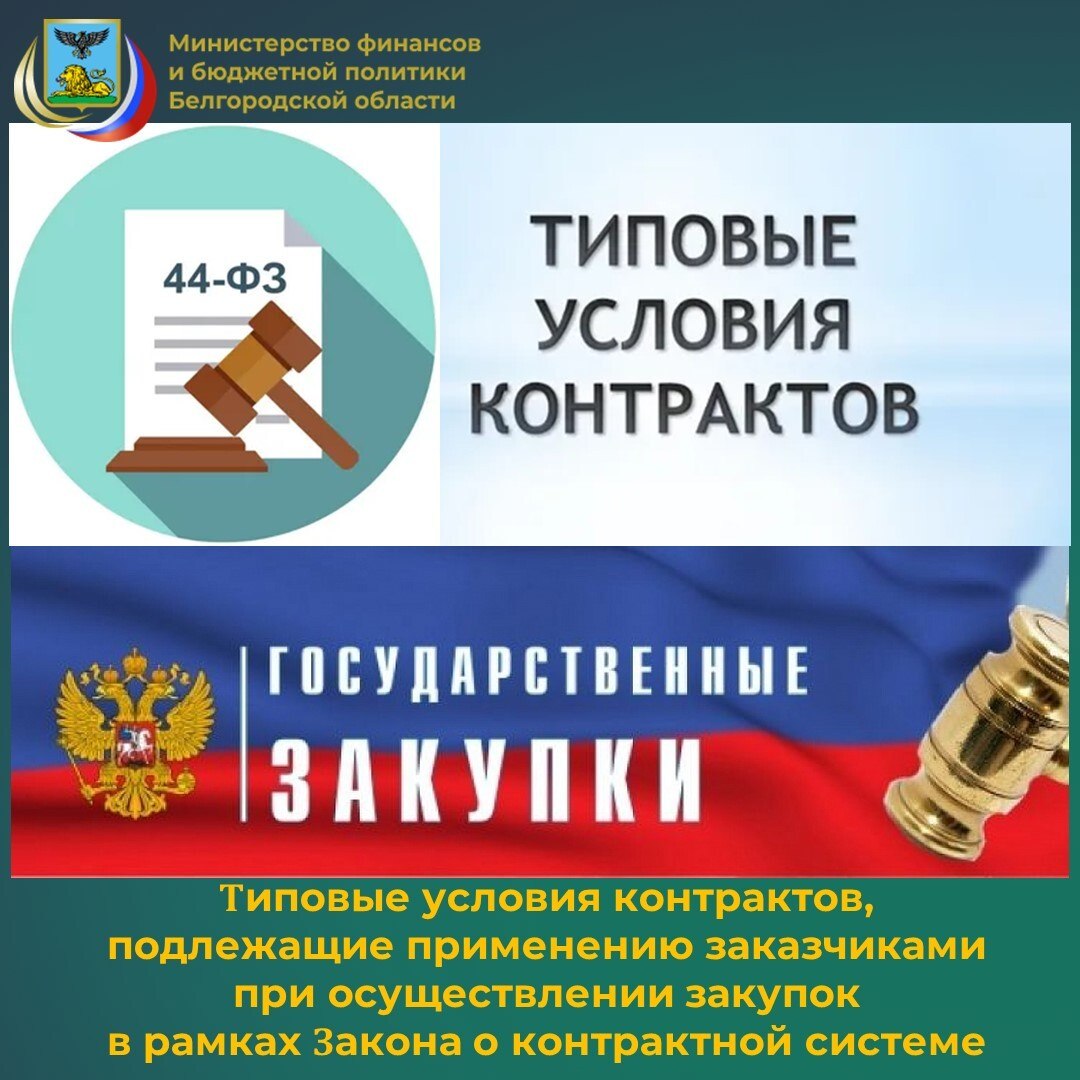 Специалисты департамента по регулированию контрактной системы в сфере закупок министерства финансов и бюджетной политики Белгородской области информируют о том, что документ устанавливает подлежащие применению заказчиками при осуществлении закупок типовые условия контрактов, содержащие условия об обязанностях заказчика, а также о правах и обязанностях поставщика (подрядчика, исполнителя) при применении мер ответственности в связи с нарушением условий контракта.