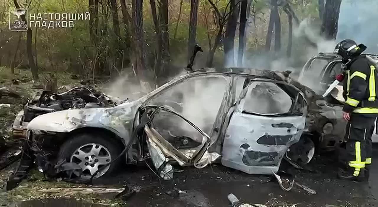 Губернатор Гладковв: в результате прилёта боеприпаса в посёлке Разумное загорелись два легковых автомобиля.