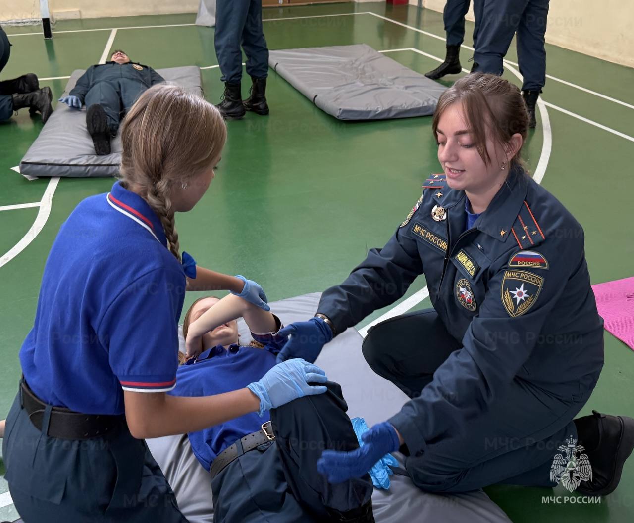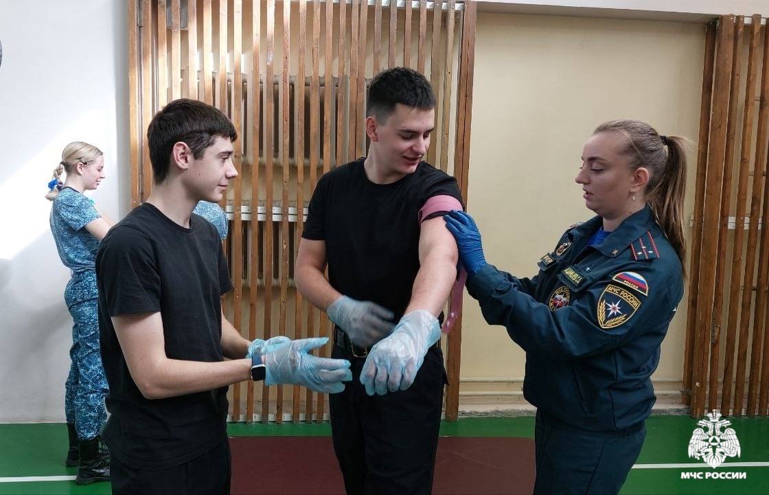 В ходе занятий сотрудники МЧС России разобрали со студентами алгоритм оказания первой помощи пострадавшему, показали, как определить, в сознании ли человек и есть ли дыхание. Кроме того, объяснили, как проводится искусственная вентиляция легких, а также показали, как уложить пострадавшего в устойчивое боковое положение и правильно наложить жгут. Все действия ребята закрепили на практике, попробовав самостоятельно оказать первую помощь условному пострадавшему.