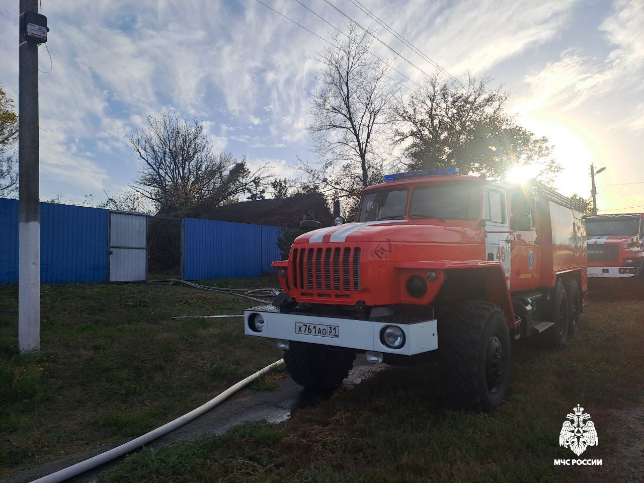 В селе Владимировка Старооскольского округа, предположительно, из-за неосторожного обращения с огнём собственника пламя охватило два сарая под одной кровлей. Огонь повредил одну из построек на площади 32 квадратных метров, а другую на площади 18 квадратных метров. Для ликвидации направлялись 8 человек и 3 единицы техники (фото 2, 3).