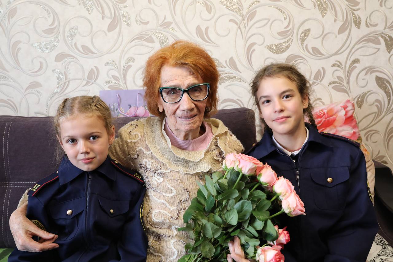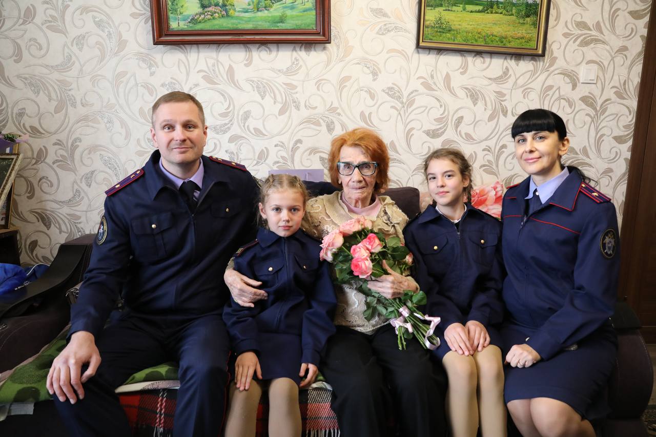 Сотрудники следственного управления Следственного комитета Российской Федерации по Белгородской области Константин Мартюхин и Диана Трубенко вместе с ученицами 5-го кадетского класса МБОУ СОШ-20 города Белгорода Александрой Давыденко и Софией Межениной поздравили с вековым юбилеем Веру Николаеву Уткину. 5 октября 2025 года ей исполнилось 100 лет.