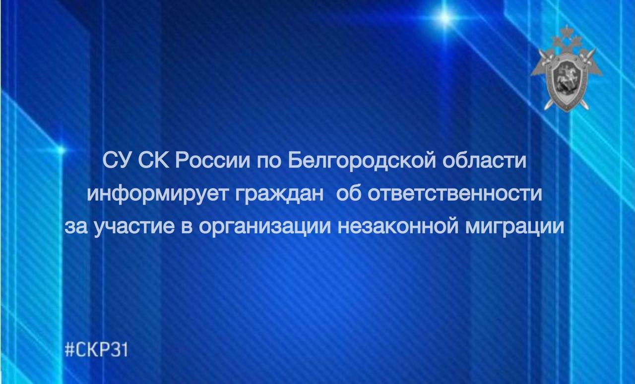 Следственное управление Следственного комитета Российской Федерации по Белгородской области информирует граждан об ответственности за участие в организации незаконной миграции