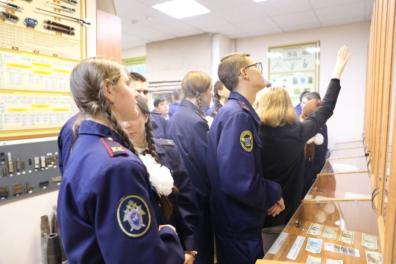 В музее представлена криминалистическая техника, предназначенная для исследования и экспертизы вещественных доказательств. Также здесь широко представлены образцы огнестрельного и холодного оружия. Среди экспонатов музея есть документы с оригиналами почерка известных исторических личностей, а также образцы документов с признаками подделки и много других. Кадеты ведомства с удовольствием ознакомились с экспозицией музея.
