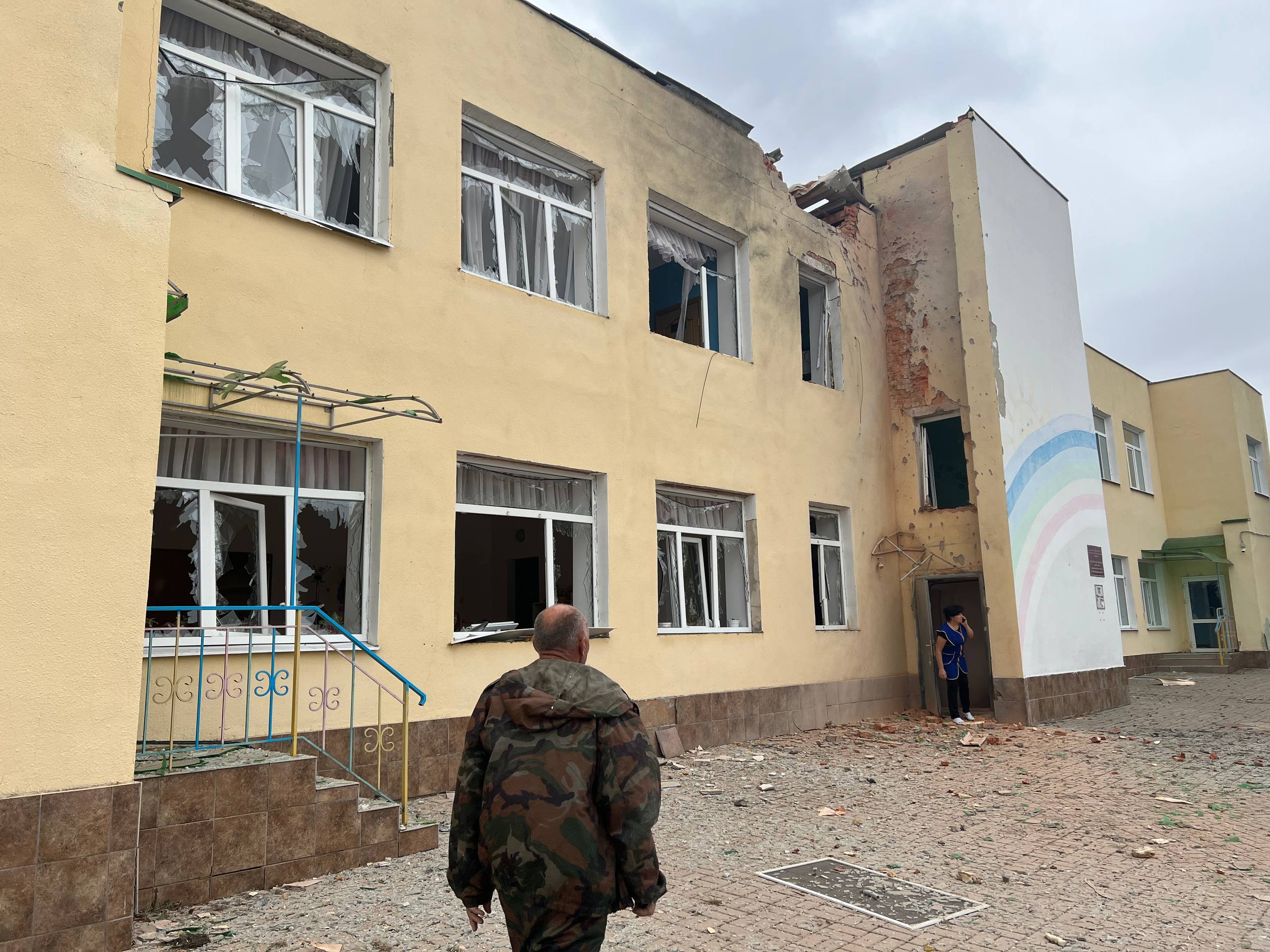 Когда мы вылезли, были серые от бетонной пыли. Песок из бороды я еле вымыл спустя пару часов. Детей, конечно, в садике не было. И слава Богу. Но они были позже, на эвакуации из поселка. У меня даже мысли не возникло использовать их фото как информационное оружие, выставляя в качестве жертв обстрела.