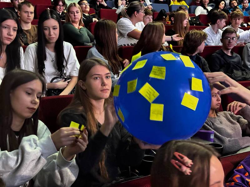Начался краш-курс с украшения воздушного шара стикерами с мечтами, целями и планами молодых людей