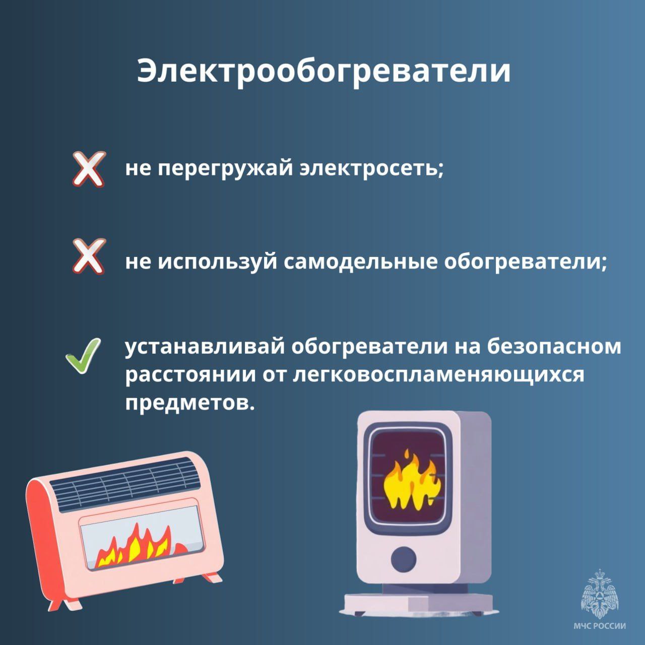 не перегружай электросеть и не используй самодельные обогреватели;