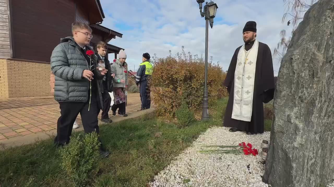После завершения богослужения школьники и полицейские организовали экскурсию к Камню и Святому Кресту, которые были установлены в храме Серафима Саровского по инициативе Митрополита Белгородского и Старооскольского Иоанна к Дню памяти жертв ДТП