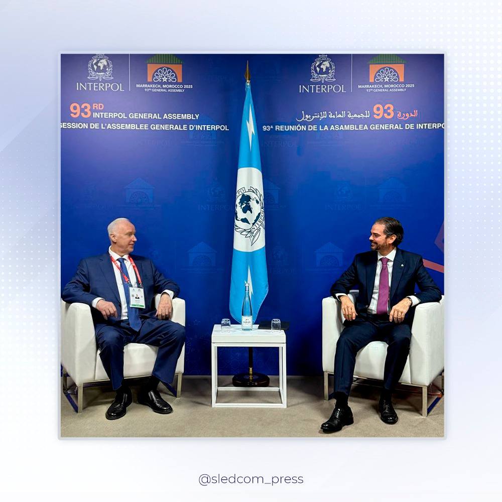 Председатель Следственного комитета Российской Федерации Александр Иванович Бастрыкин при участии начальника Национального центрального бюро Интерпола МВД России Валерия Анатольевича Калачёва провел на полях 93-ей сессии Генеральной ассамблеи Интерпола в городе Марракеше встречу с Генеральным секретарем Интерпола Вальдеси Уркизой.