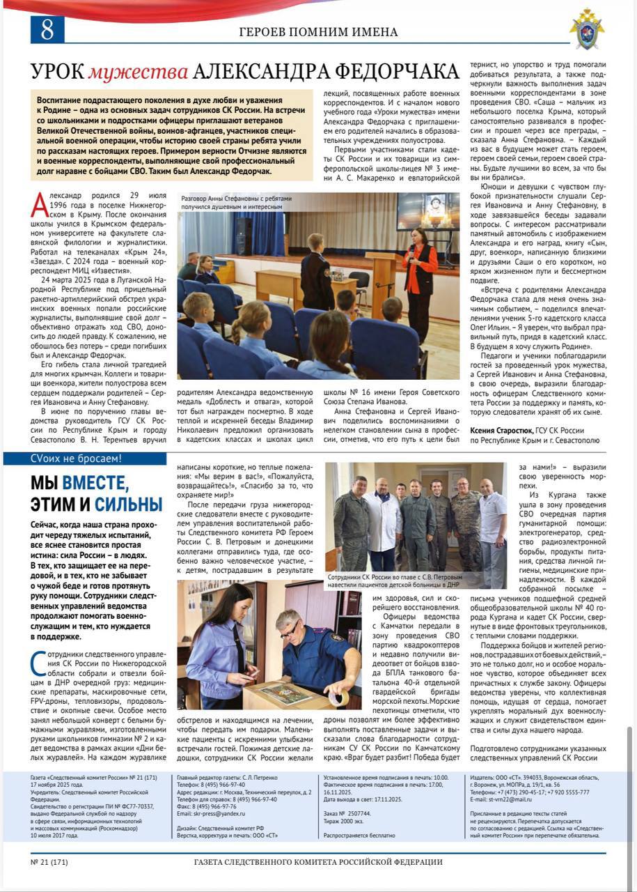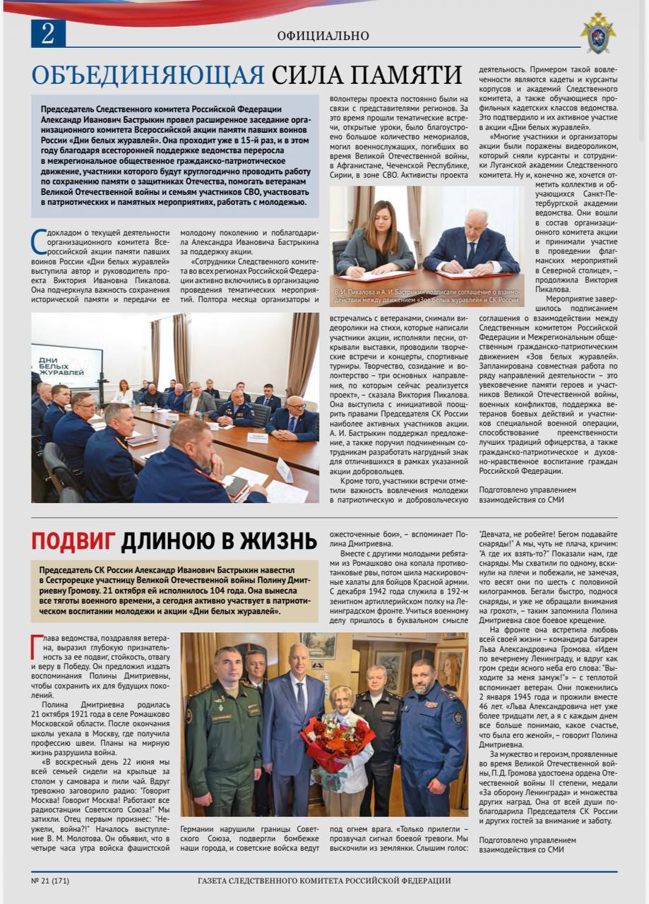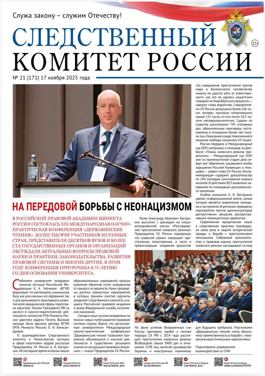 Предлагаем ознакомиться с новым выпуском газеты «Следственный комитет России» 21(171) от 17 ноября 2025 года на официальном сайте СК России
