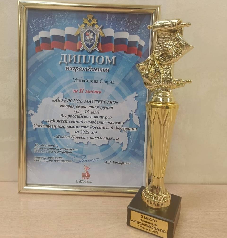 Дочь сотрудницы СУ СК России по Белгородской области София Минайлова стала призером Всероссийского конкурса художественной самодеятельности СК России в номинации «Актерское мастерство» в возрастной категории (11-15 лет)