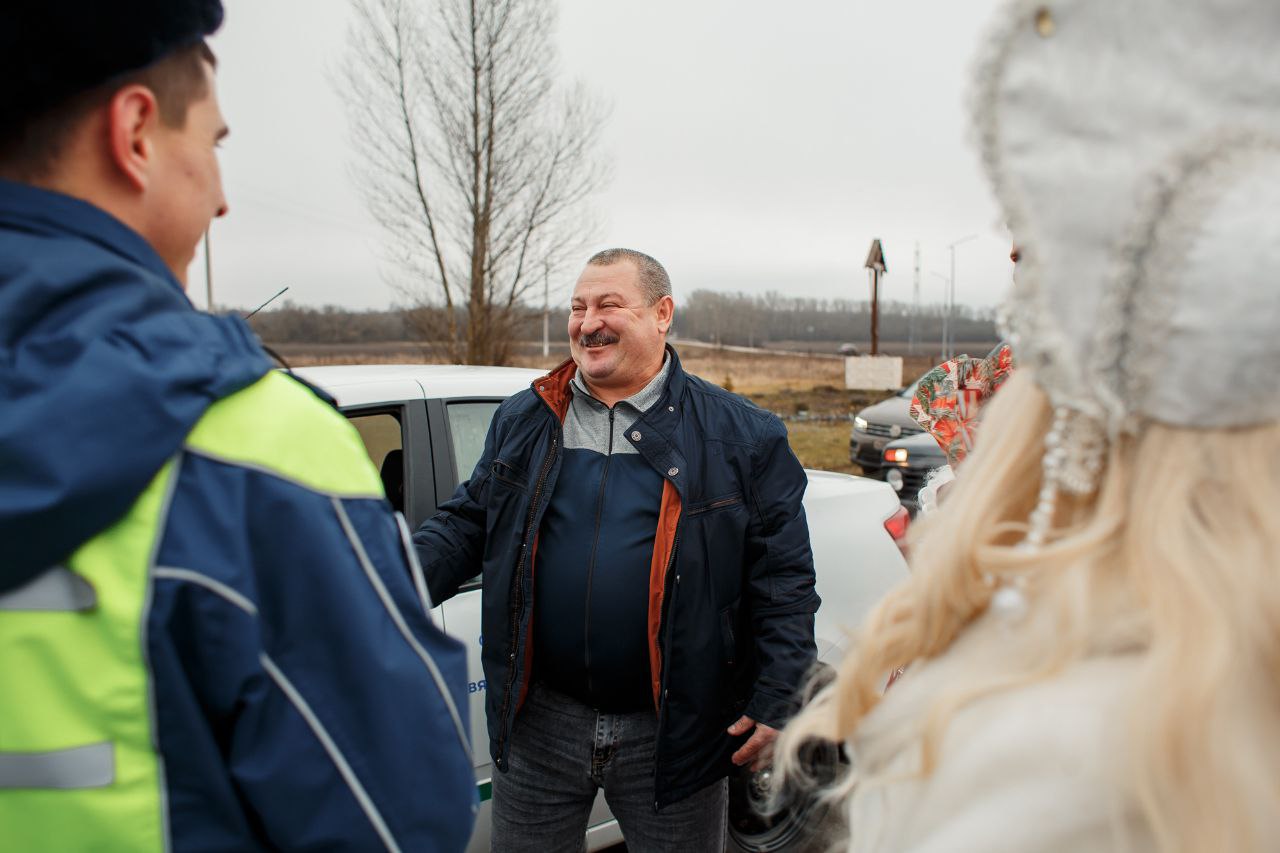 А в разгар акции к Максиму Семенову обратилась автоледи. Она пробила колесо и самостоятельно не смогла поставить запаску. Заместитель командира взвода ОР ДПС Максим Семёнов вместе с членом Общественного совета при УМВД Сергеем Сальниковым помогли девушке и её 3-х летнему пассажиру продолжить поездку, поздравили их с наступающим Новым годом и пожелали безопасных дорог.