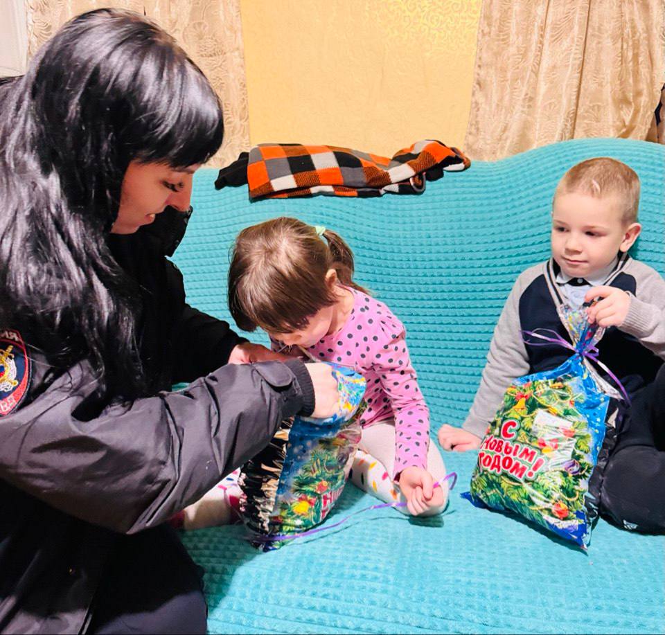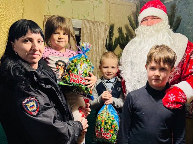 В рамках акции «Полицейский Дед Мороз» сотрудники красногвардейского отдела полиции поздравили с Новым годом и Рождеством Христовым семье, которые особенно нуждаются в заботе и внимании. Зимний волшебник порадовал юных жителей округа подарками, пожелав исполнения самых заветных желаний.