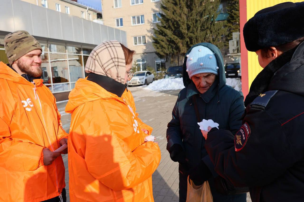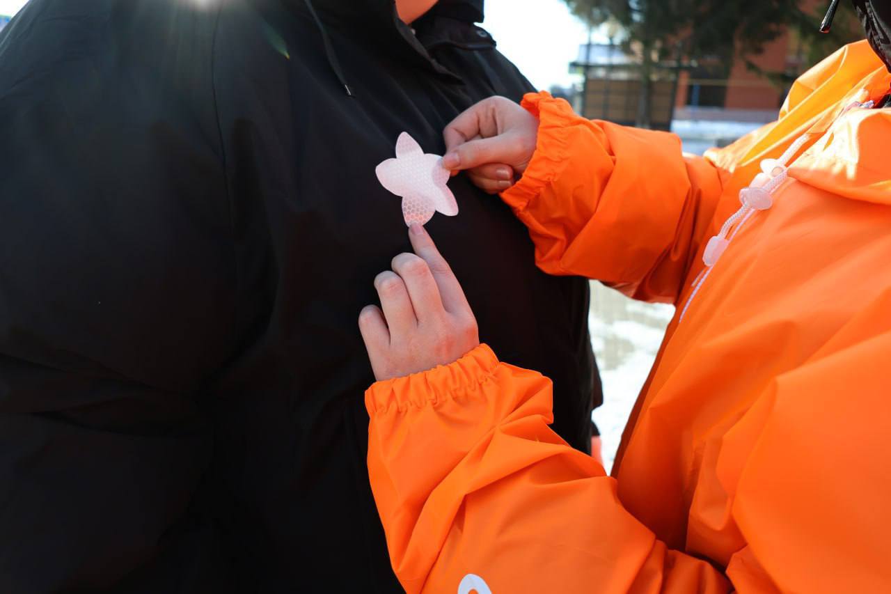 В Борисовке автоинспекторы совместно с волонтерами призывают всех пешеходов сделать себя заметнее с помощью световощвращателей