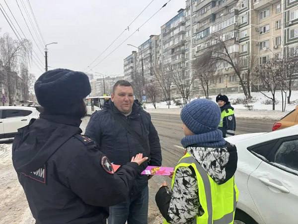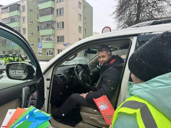 Юные помощники белгородских автоинспекторов поздравили водителей с 23 февраля