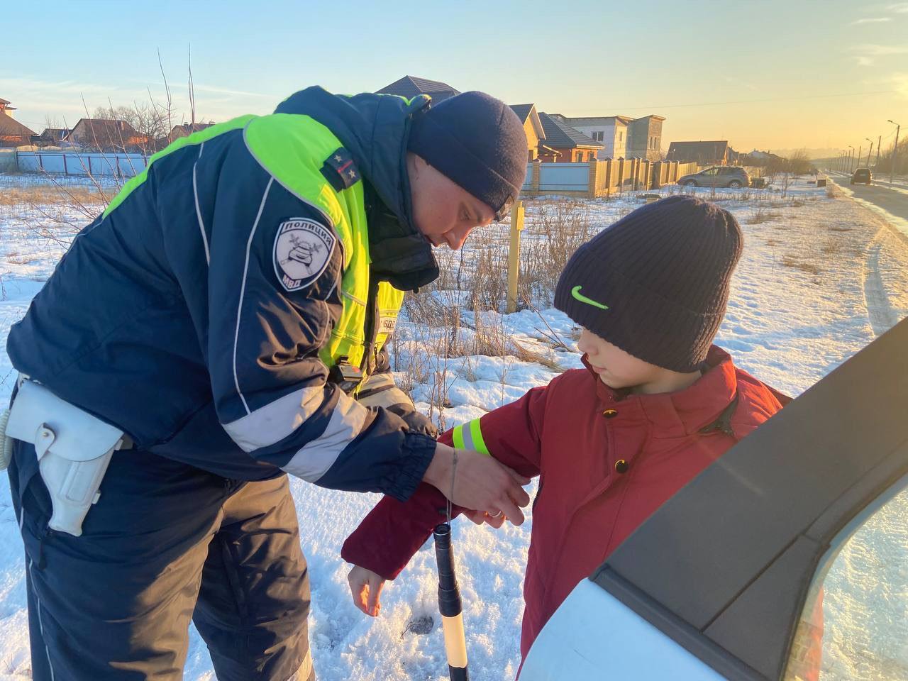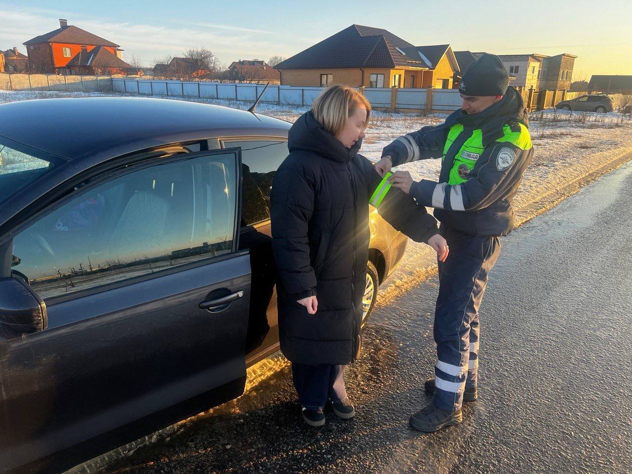 Сотрудники Госавтоинспекции в ходе профилактических мероприятий оснастили водителей и пешеходов световозвращающими повязками, рассказав их преимущества, как актуальный способ обезопасить себя в темное время суток