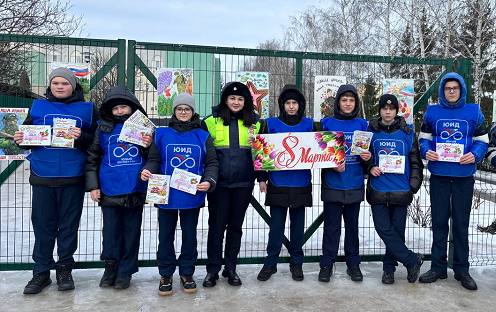 Сотрудники белгородской Госавтоинспекции и ЮИДовцы поздравили представительниц прекрасного пола