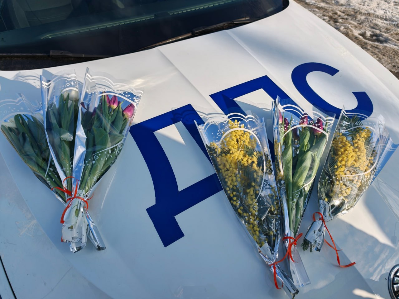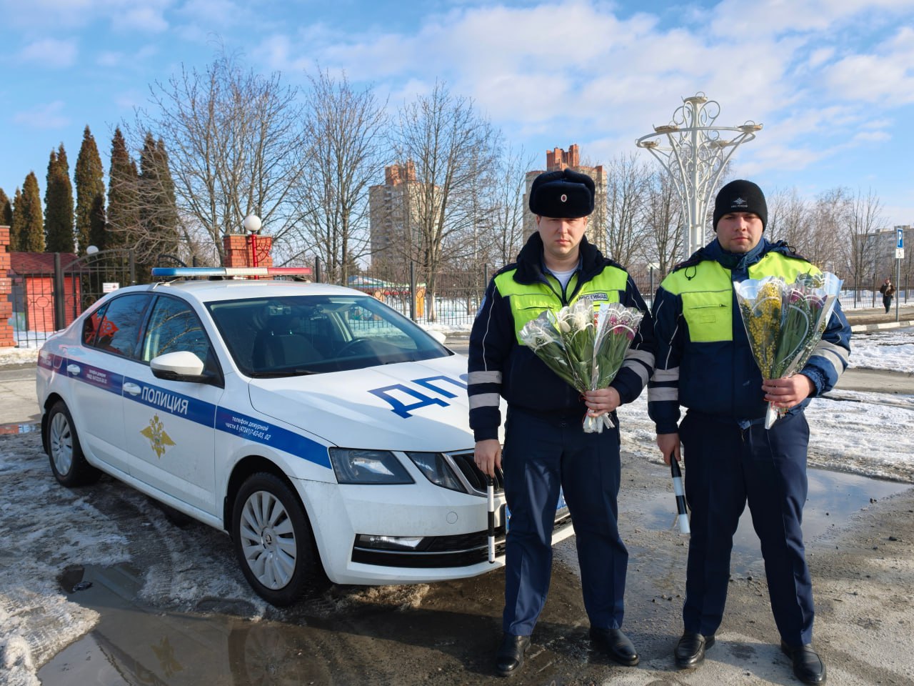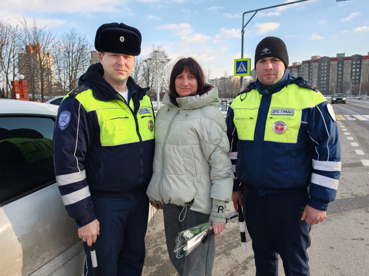 На дорогах города автоинспекторы останавливали автомобили под управлением женщин, но вместо привычной проверки документов дарили им весенние букеты и теплые пожелания. Полицейские поздравляли автоледи с праздником весны, желали безопасных дорог и хорошего настроения.