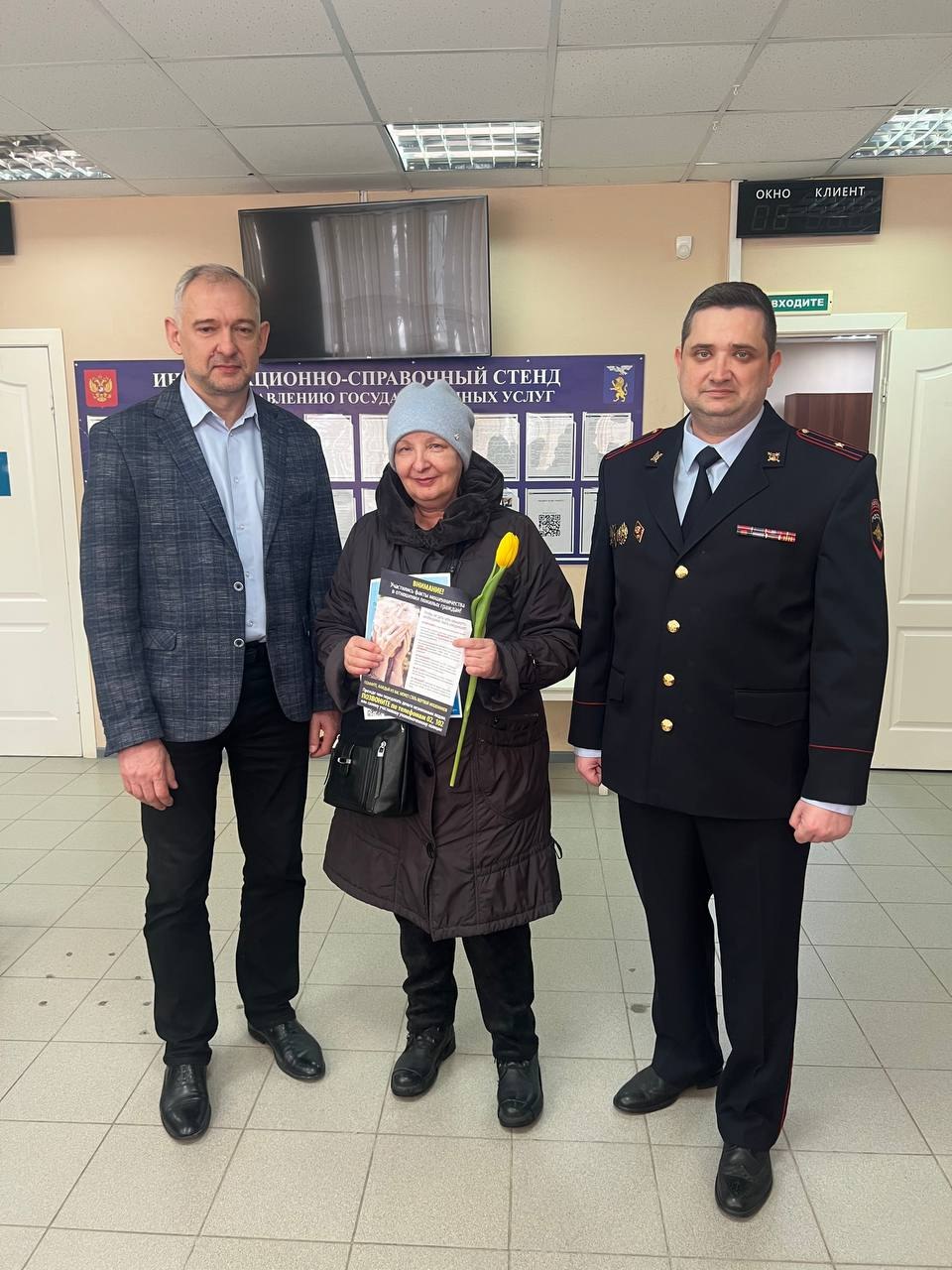 Правоохранители не только вручили женщинам цветы, но и провели профилактические беседы, направленные на предупреждение мошеннических действий. Полицейские также разъяснили преимущества и возможность подачи заявлений через Единый портал государственных услуг без обязательного визита в ведомство.