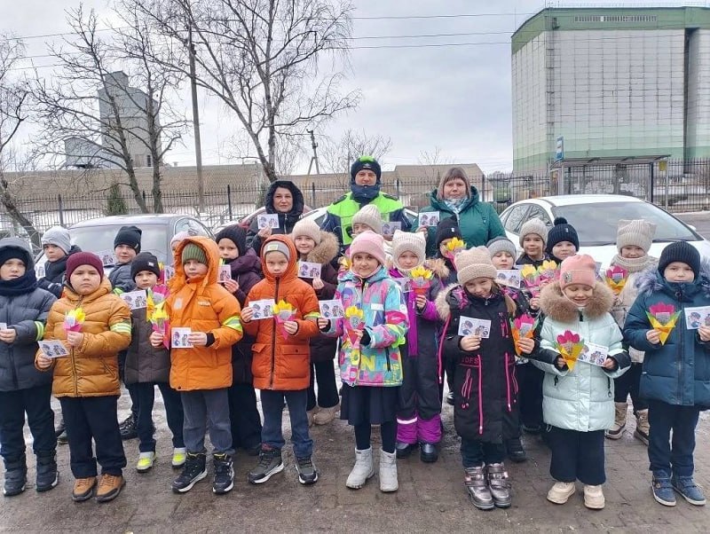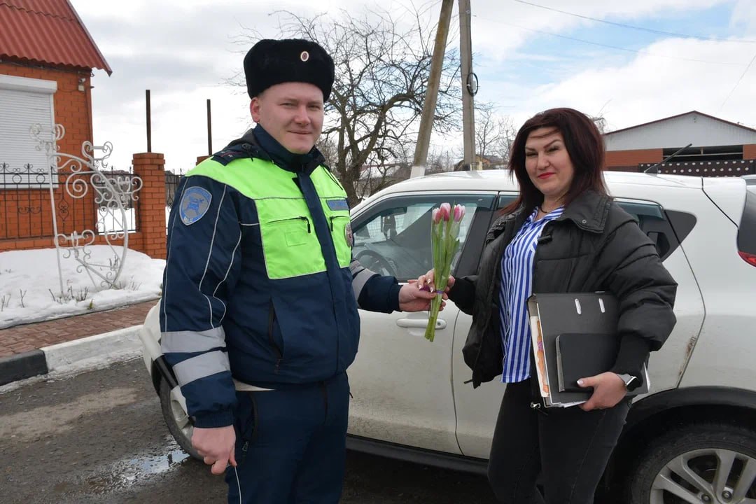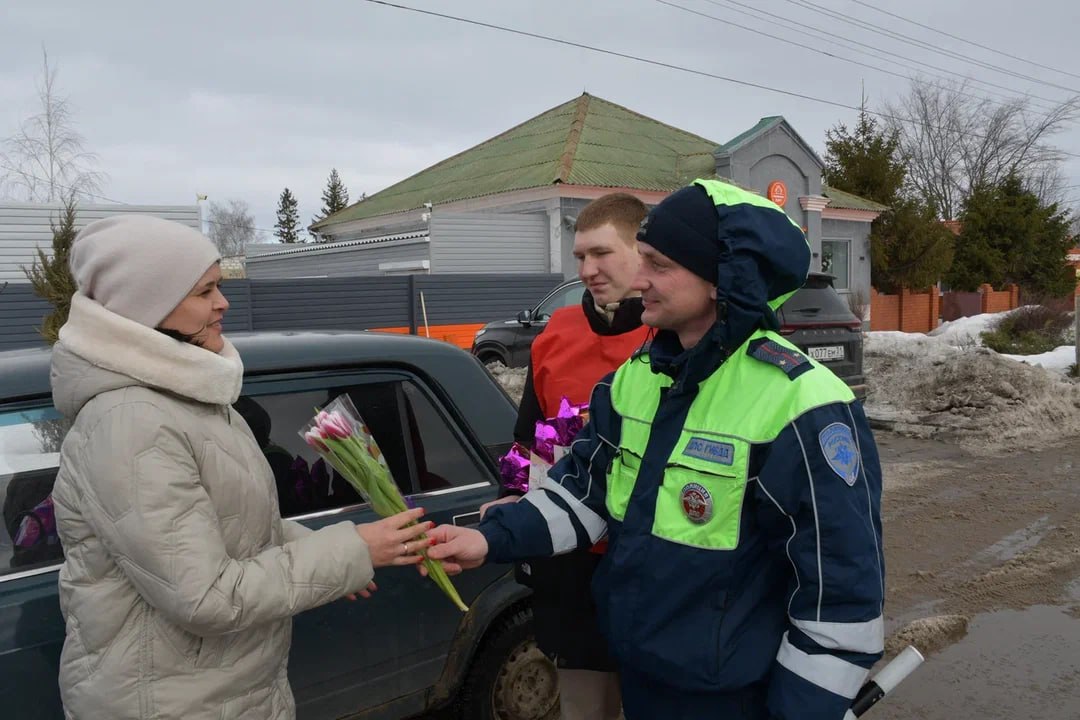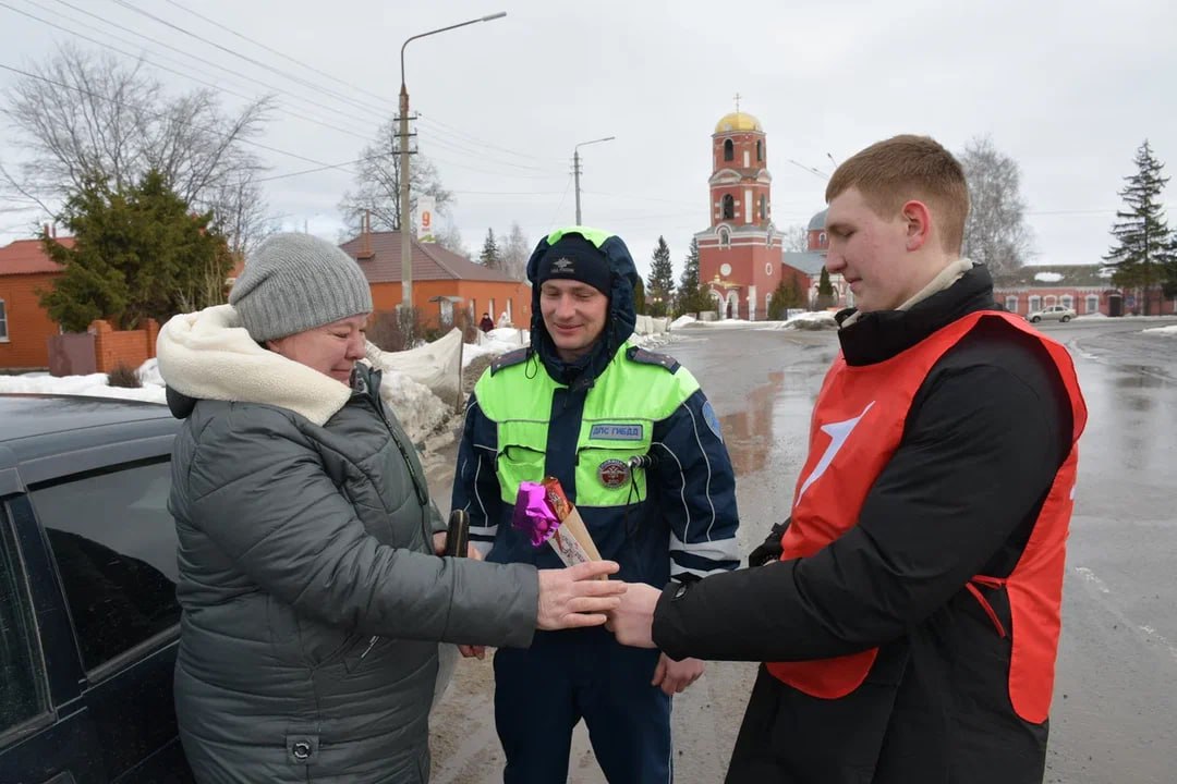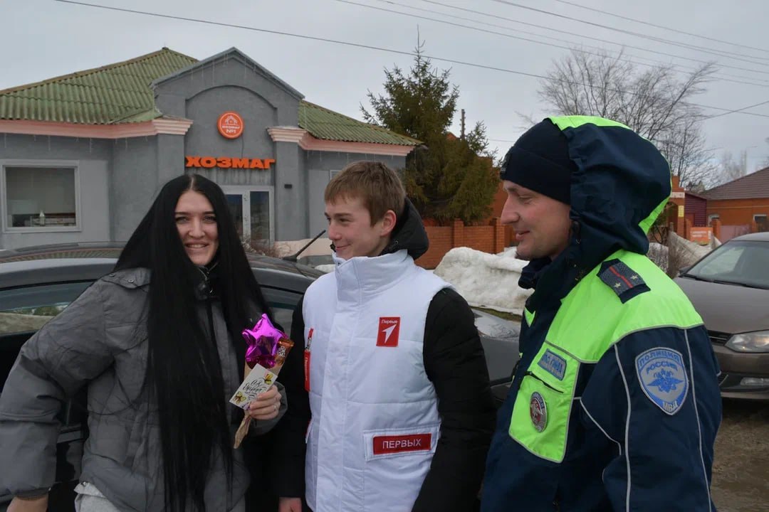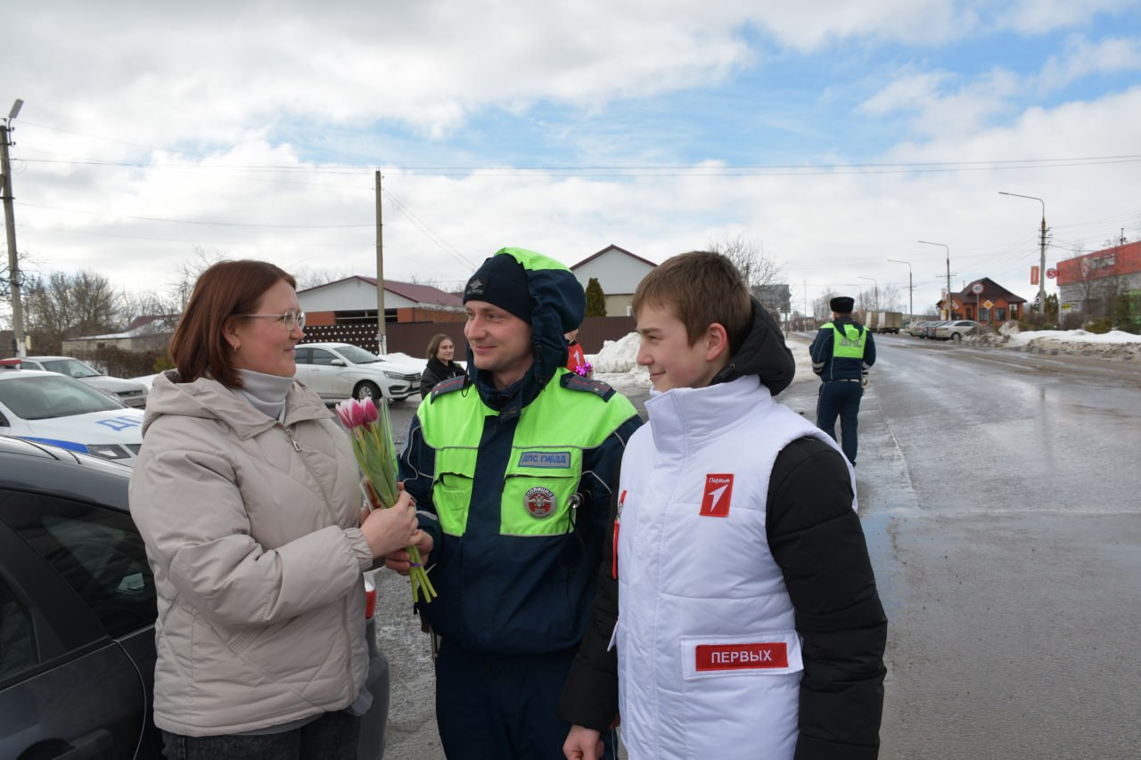 Белгородские автоинспекторы вместе с активистами «Движения первых», кадетами и ЮИДовцами поздравили женщин с 8 марта