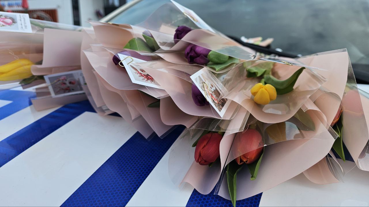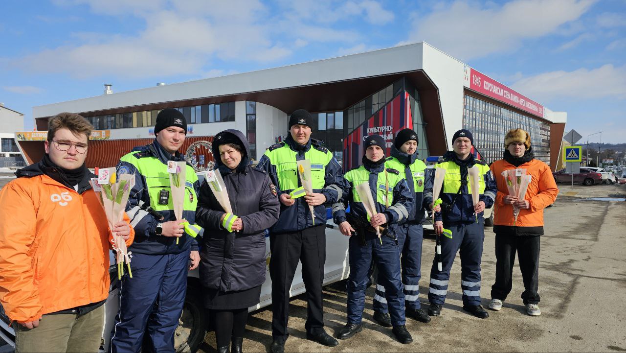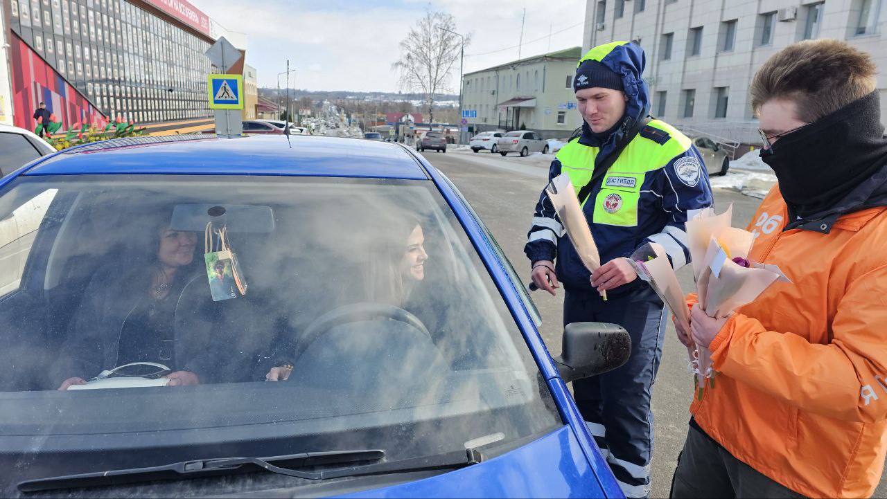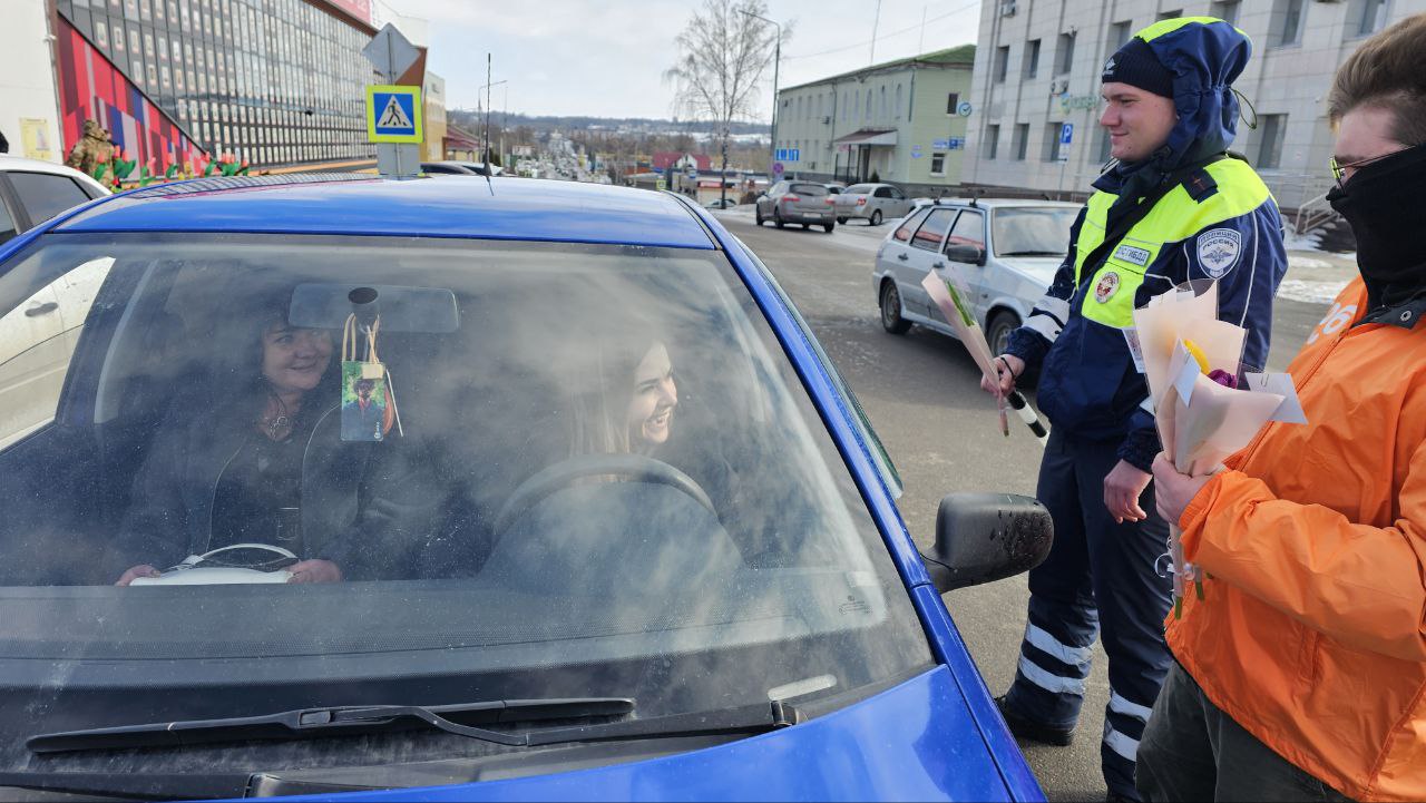 «Цветочный патруль» подарил праздничное настроение автомобилисткам в Корочанском округе