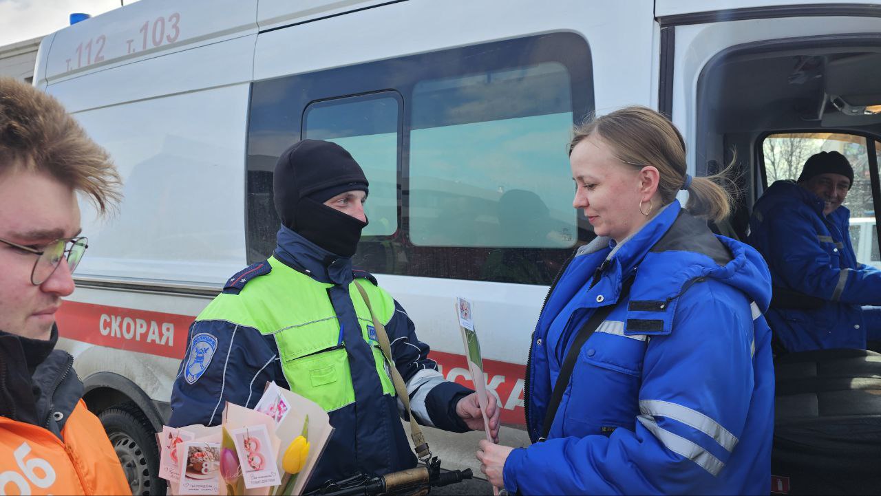 Полицейские останавливали женщин, чтобы поздравить с 8 марта. Стражи порядка и активисты вручали участницам дорожного движения тюльпаны, желали зеленого света и безопасных дорог. Автоледи благодарили полицейских и их юных помощников солнечными улыбками, обещая быть внимательными за рулем и соблюдать все правила.