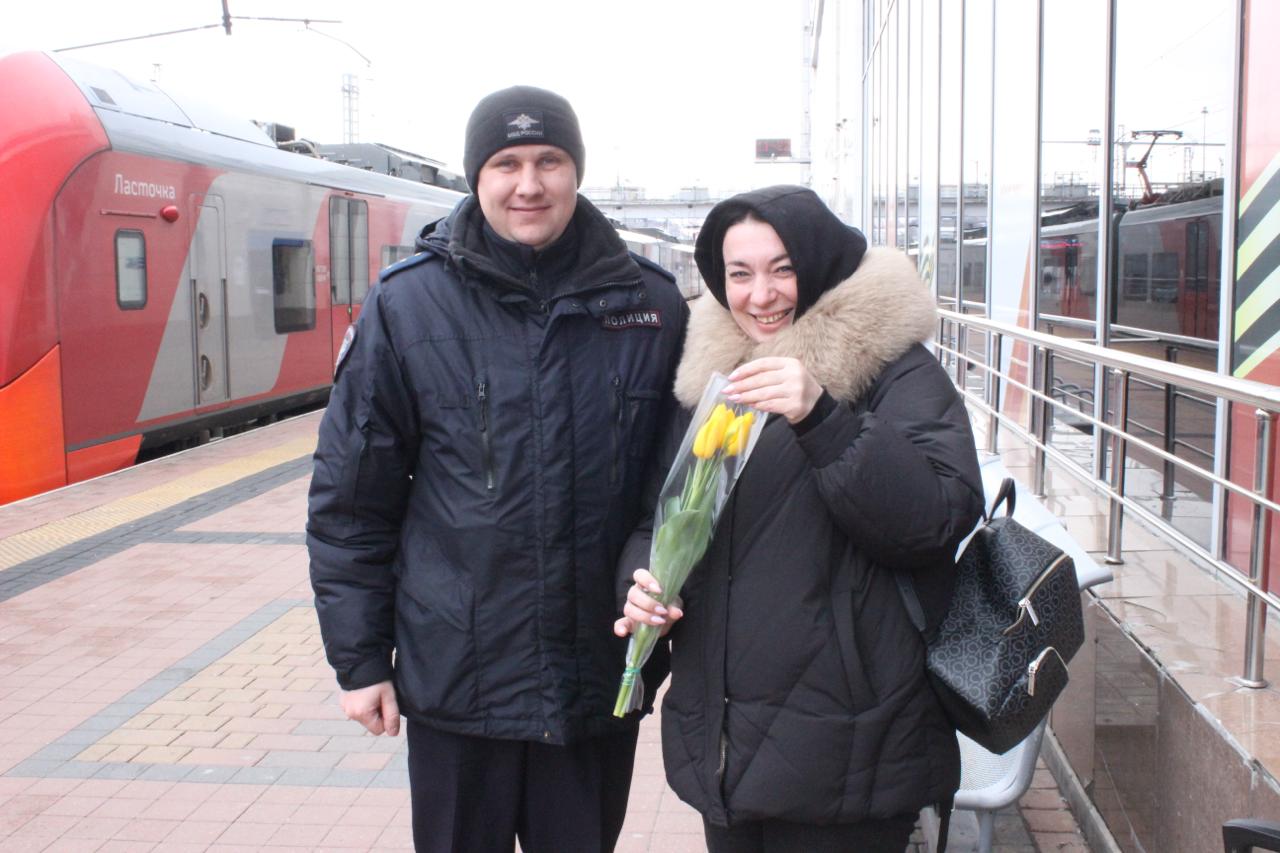 В рамках акции «8 Марта - в каждый дом» транспортные полицейские линейных управлений и отделов дарят женщинам цветы, комплименты, а также наилучшие пожелания!