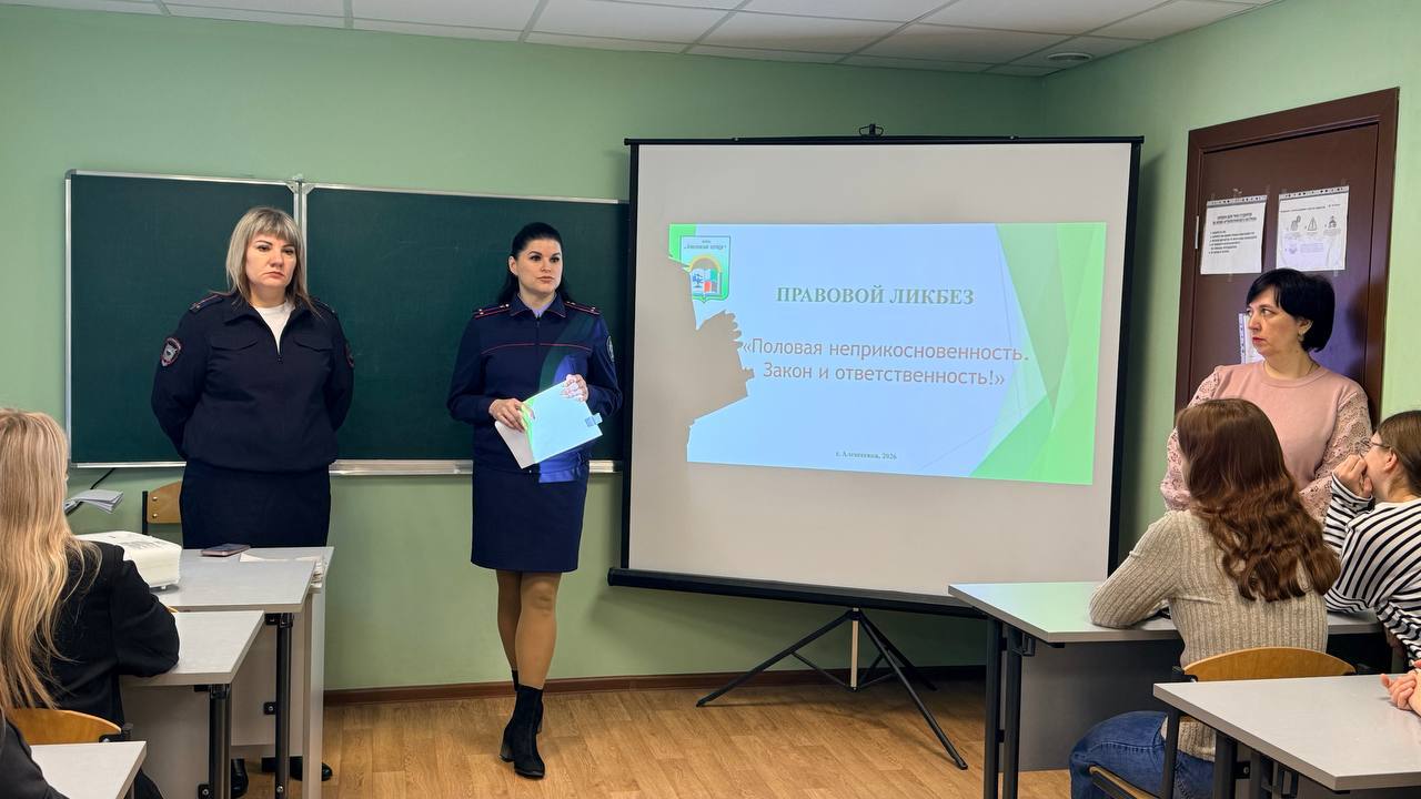 Помощник следователя Алексеевского межрайонного следственного отдела СУ СК России по Белгородской области Вера Боденко и инспектор ОПДН ОМВД России «Алексеевский» Наталья Мирошник провели профилактическое мероприятие в областном государственном автономном профессиональном образовательном учреждении «Алексеевский колледж» (ОГАПОУ «Алексеевский колледж»).