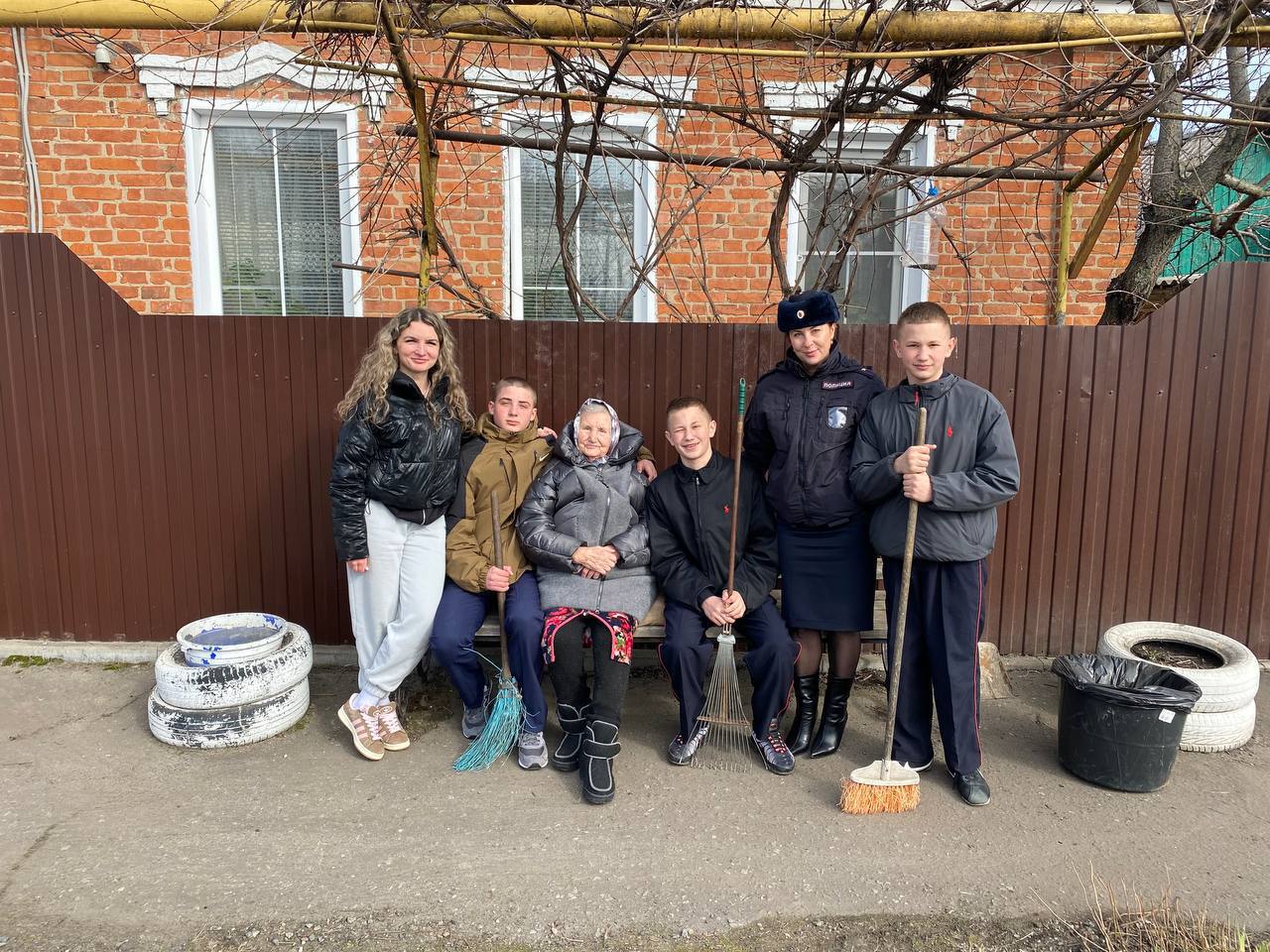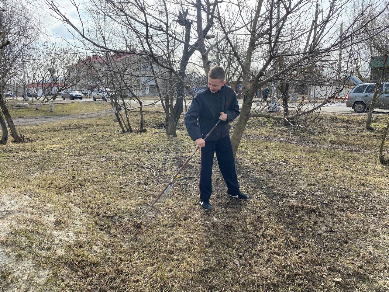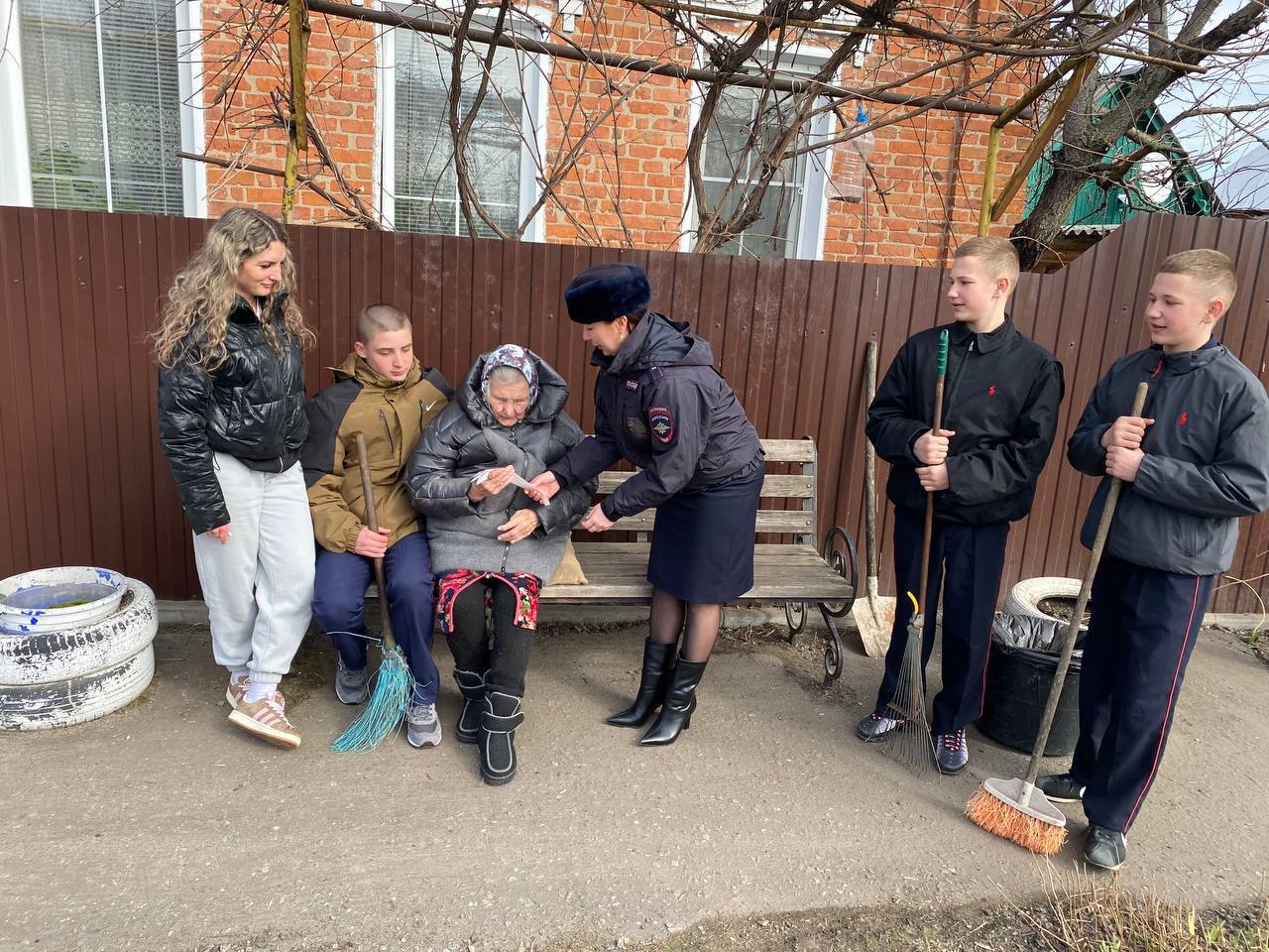 Автоинспекторы и кадеты дружно взялись за работу: они собрали мусор, привели в порядок двор и помогли с подготовкой участка к весенне-летнему сезону