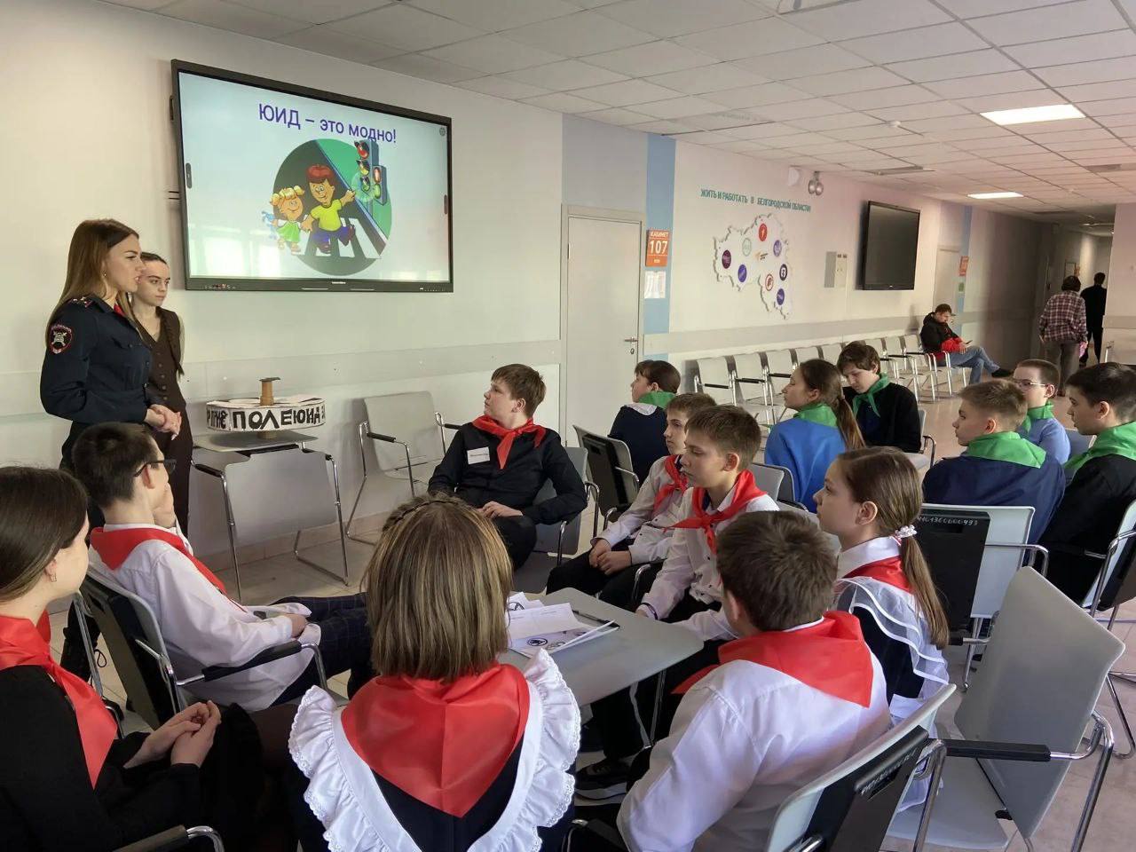 В Губкине сотрудники Госавтоинспекции совместно с педагогами образовательных учреждений организовали тематическое мероприятие, направленное на изучение и закрепление знаний Правил дорожного движения для юные инспекторы движения
