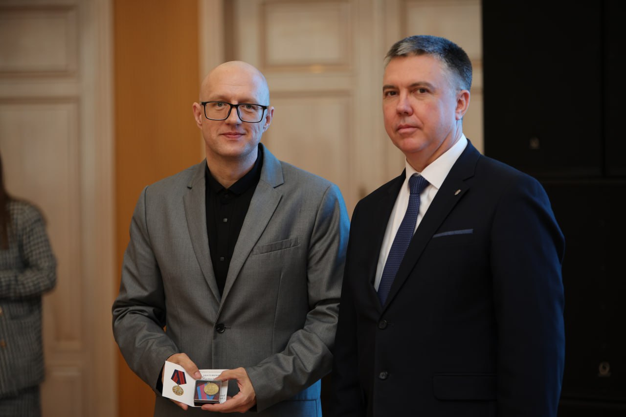 В торжественной обстановке начальник УМВД России по Белгородской области Виталий Власов вручил награды представителям общественного совета Светлане Борухе, Алексею Потапову, Алексею Стопичеву и корреспонденту АНО «Редакция газеты «Валуйская звезда» Василию Санееву.