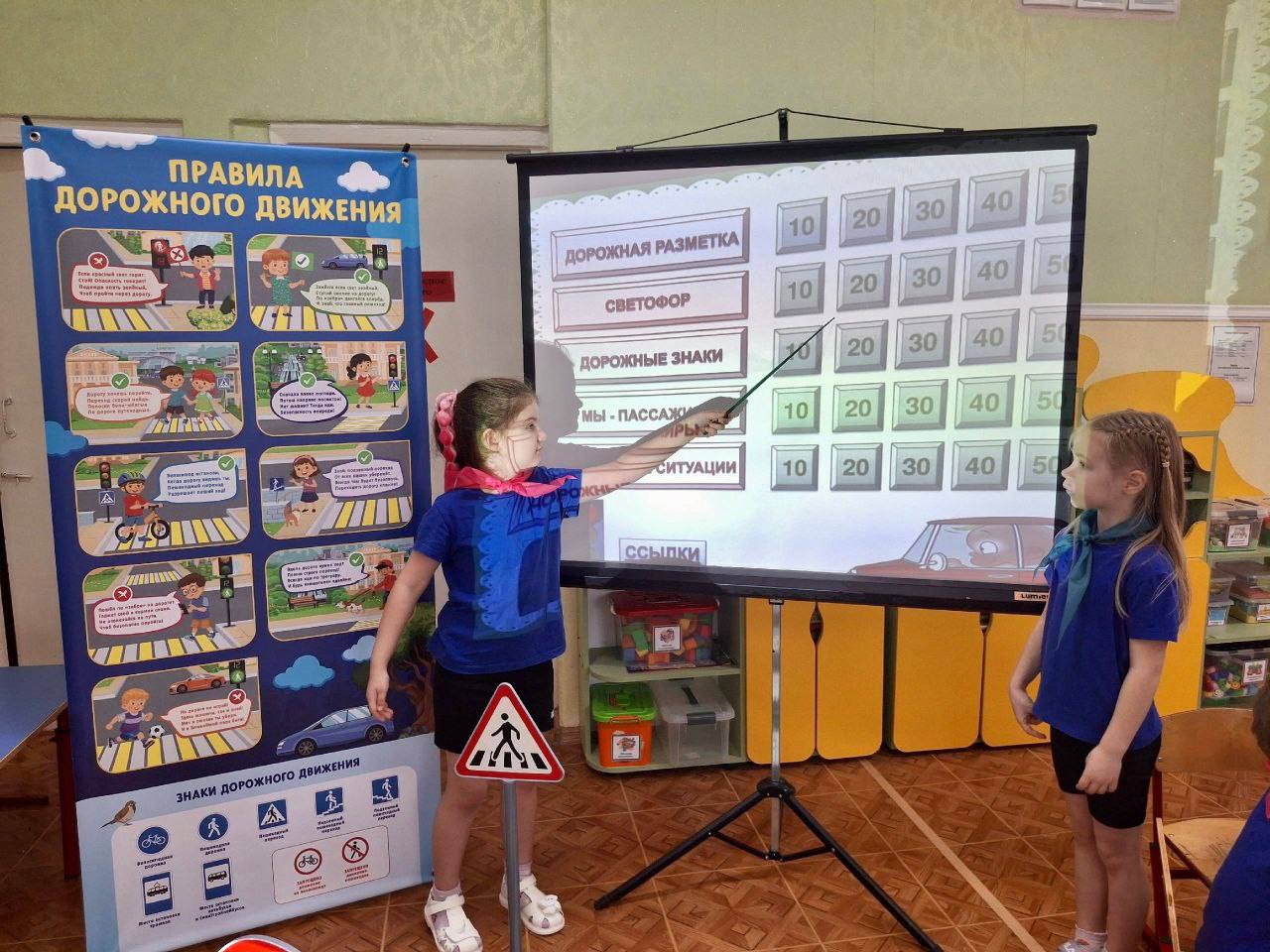 Ребята разделились на две команды, каждой из которых предстояло пройти несколько испытаний, связанных с дорожными правилами