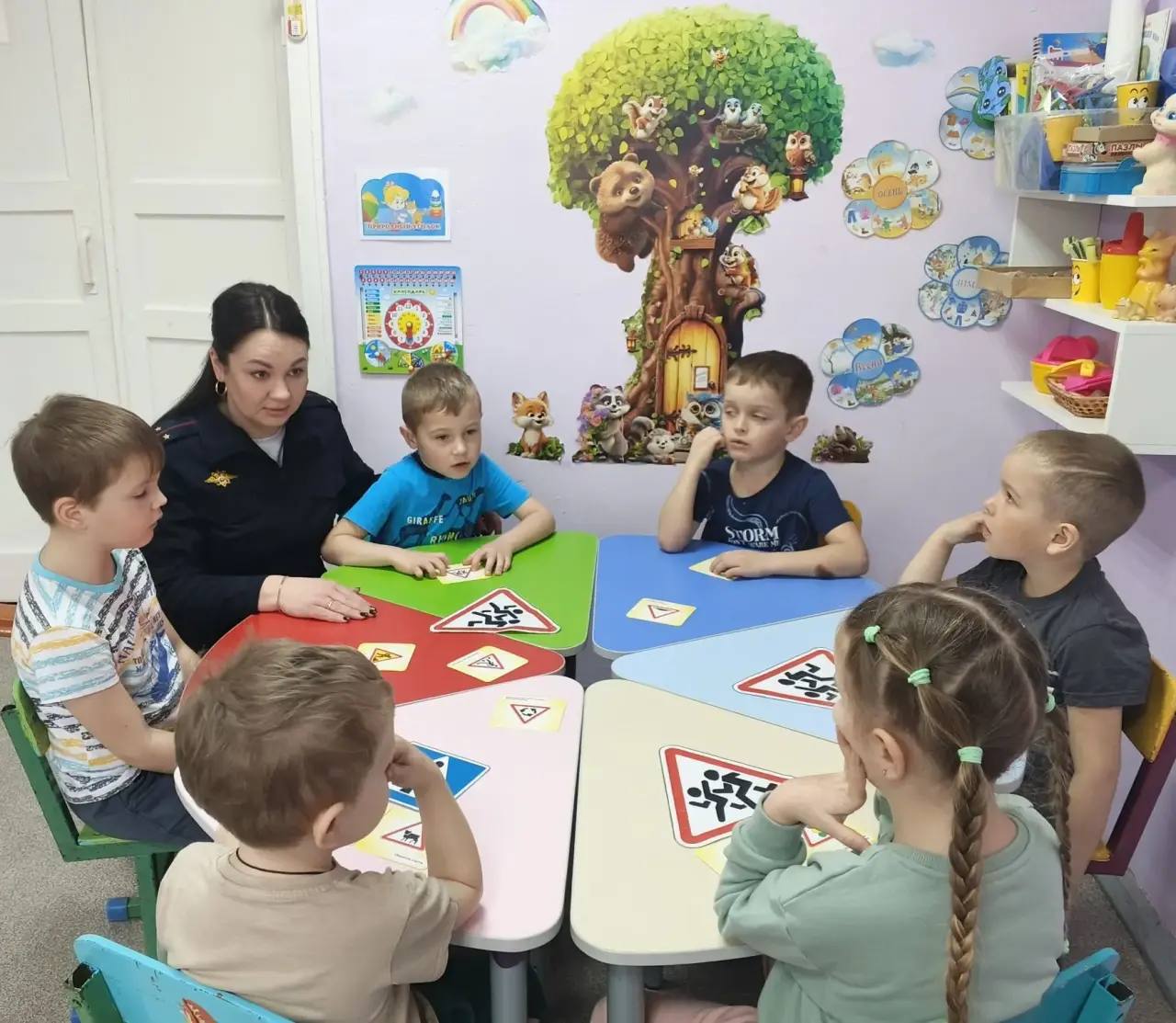 В Алексеевке сотрудники Госавтоинспекции организовали для малышей подшефного детского сада увлекательное занятие по изучению основ дорожной безопасности