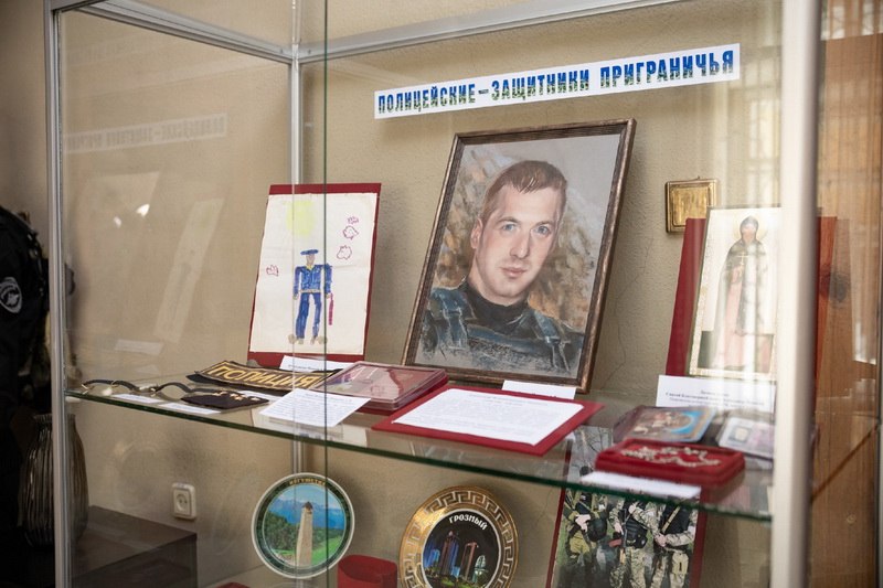 В центре выставки – портрет Александра Владимировича, написанный художницей и представителем Общественного совета при УМВД России «Старооскольское» Татьяной Поляковой. Родители Александра и коллеги отметили удивительное сходство изображения на портрете с тем, как патрульный выглядел в жизни.