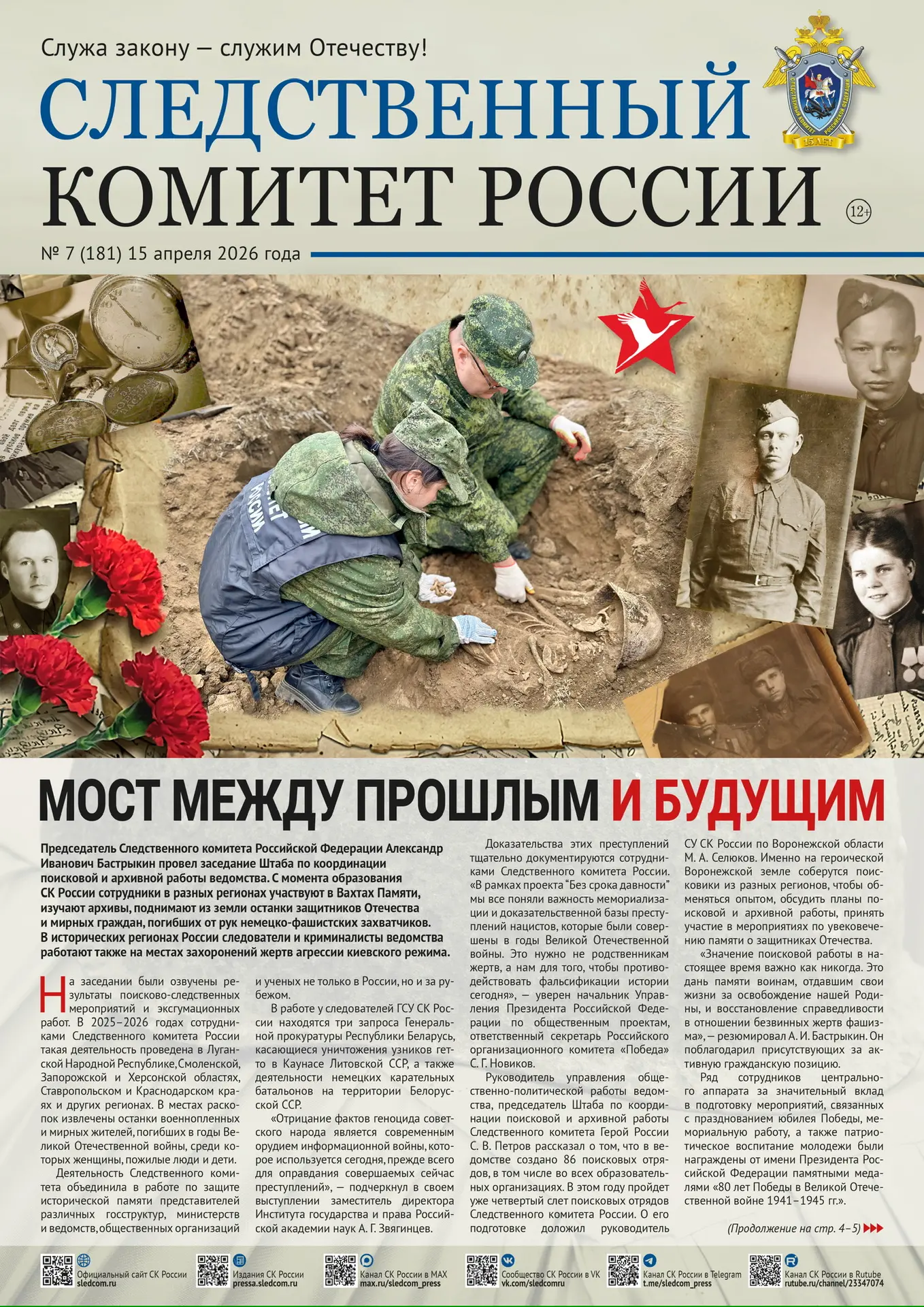 Предлагаем ознакомиться с новым выпуском газеты «Следственный комитет России» № 7 (181) от 15 апреля 2026 года на официальном сайте СК России