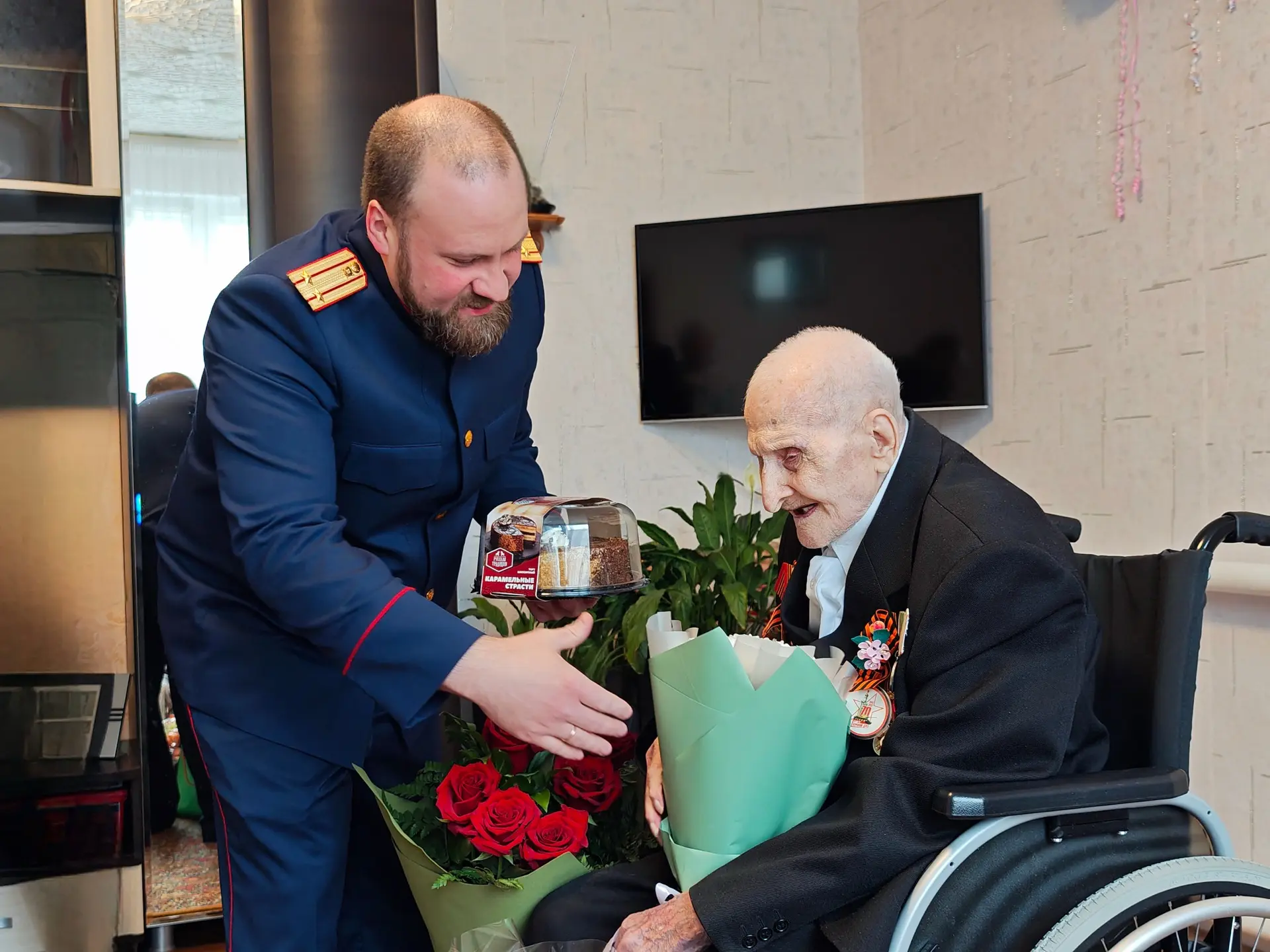 Сотрудники СУ СК России по Белгородской области поздравили ветерана Великой Отечественной войны Александра Иосифовича Стаметова со 100-летним юбилеем