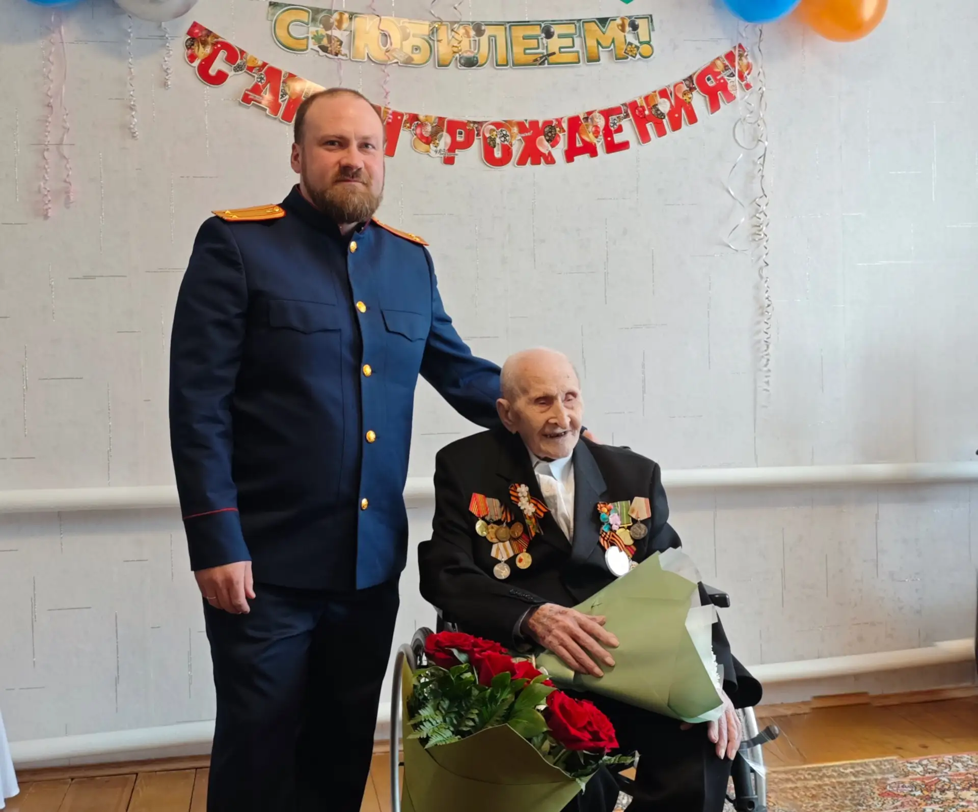 Поздравляя юбиляра, Дмитрий Агафонов высказал искренние слова благодарности за мужество, проявленное в годы войны, и за многолетний добросовестный труд в мирное время, пожелал крепкого здоровья и бодрости духа.