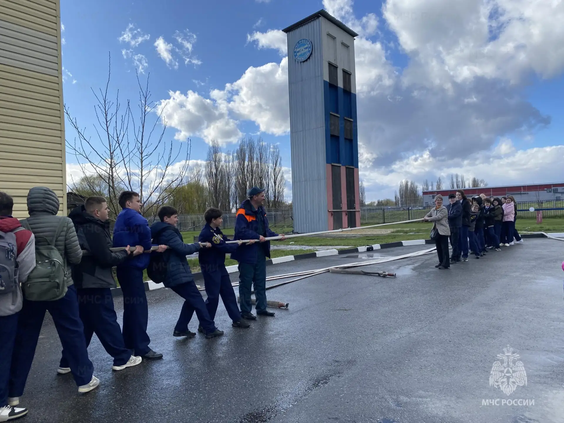 А затем началась практика – кадеты учились самостоятельно справляться с уловным очагом возгорания. Для этого они с помощью огнеборцев проложили рукавную линию и, подав воду, стремились попасть в специальную мишень, имитирующую условный очаг пожара.