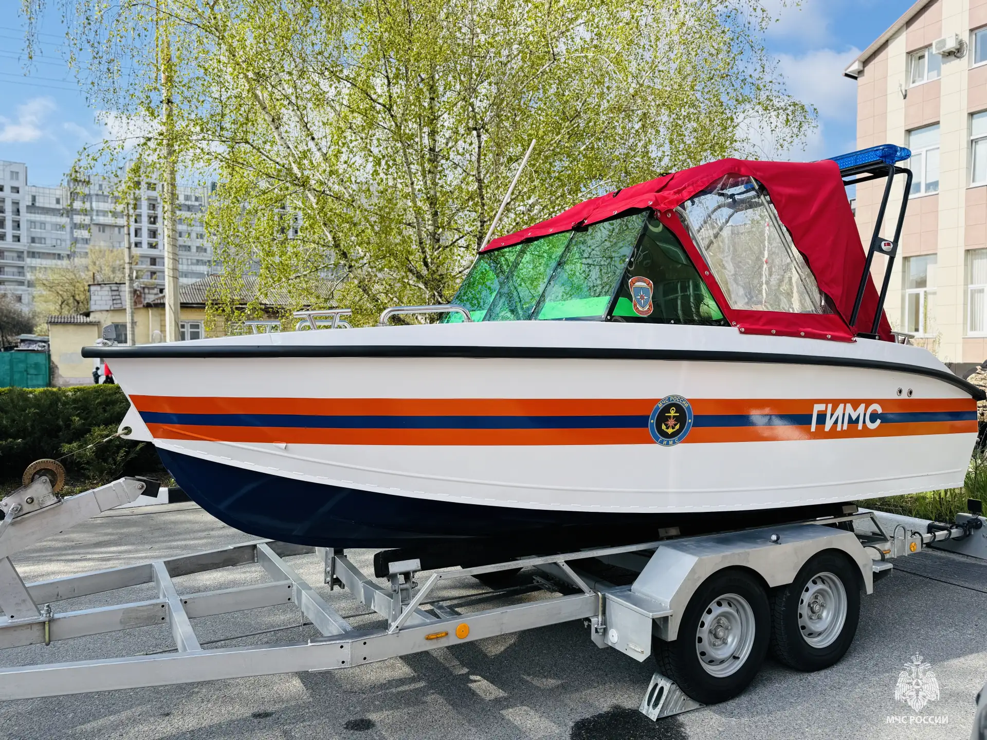 В этот день на обеспечение подразделений спасательного ведомства поступило 8 единиц техники – пожарная автолестница АЛ-30, три пожарные автоцистерны, одна из которых – бронированная, штабной автомобиль для службы пожаротушения, грузопассажирский оперативно-служебный автомобиль «ГАЗ Соболь», «УАЗ Патриот» и патрульный катер для Государственной инспекции по маломерным судам.