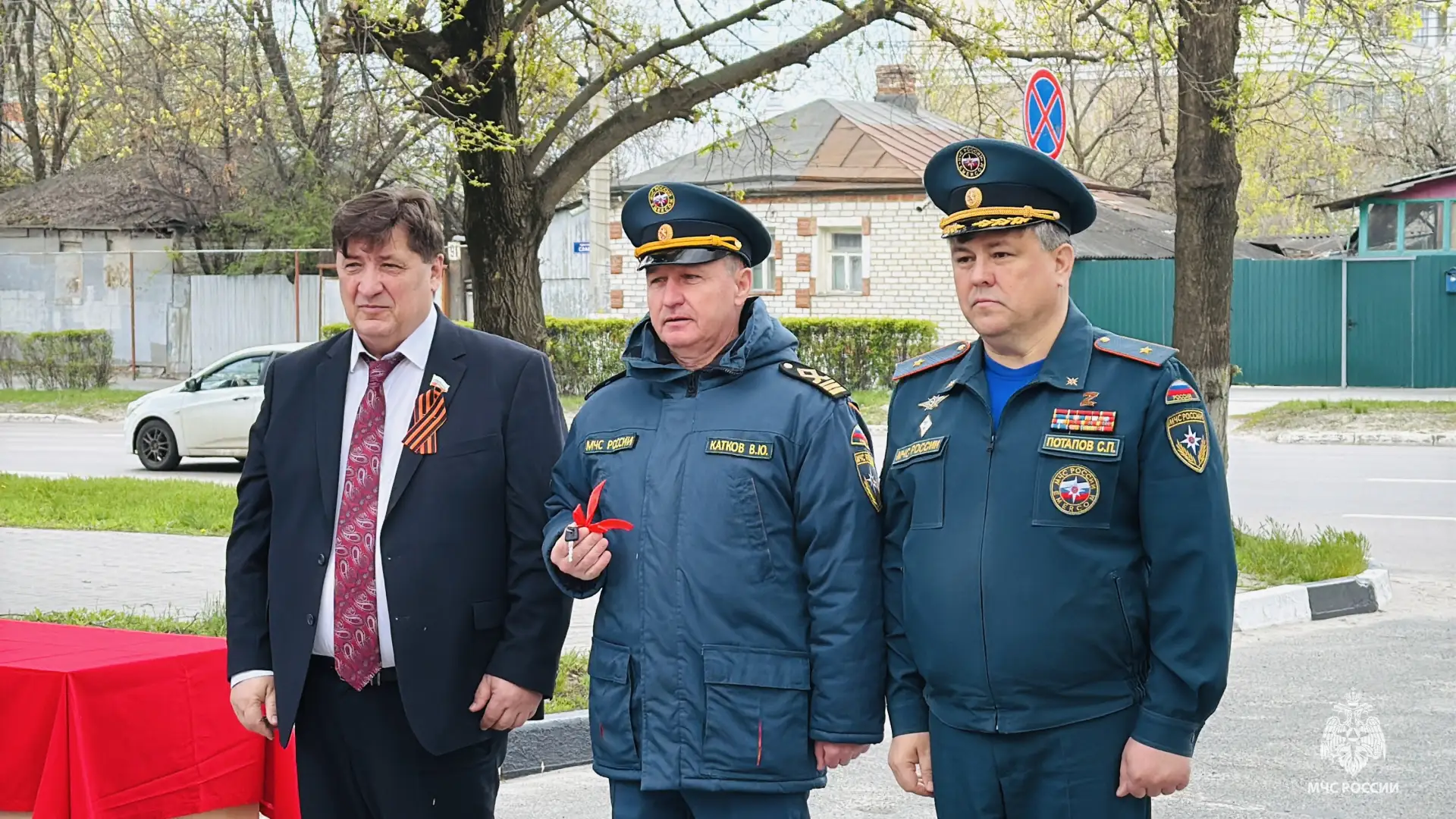 Ключи вручили председатель Белгородской областной Думы Юрий Николаевич Клепиков и начальник Главного управления МЧС России по Белгородской области Сергей Петрович Потапов.