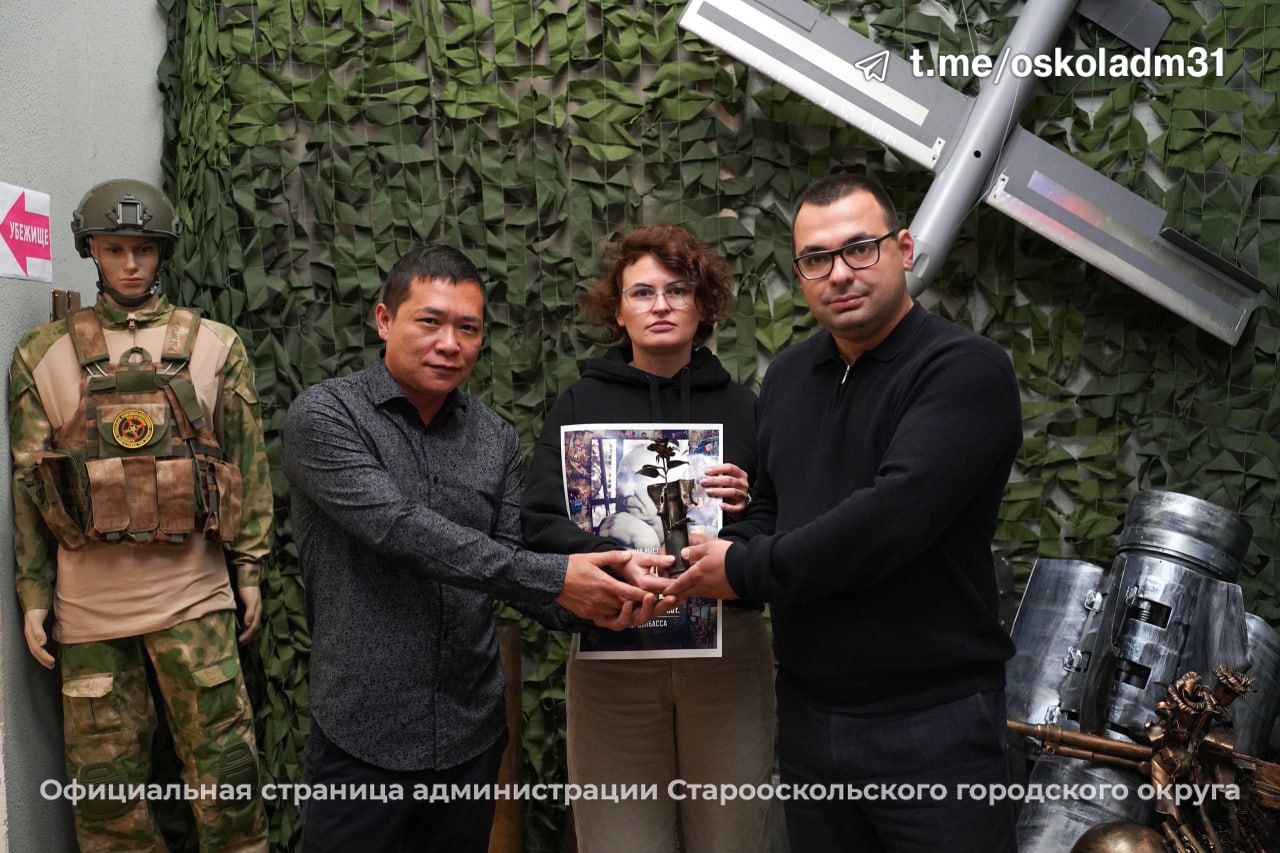 В Старооскольский краеведческий музей эту замечательную скульптуру передали исполнительный секретарь местного отделения партии «Единая Россия» Вячеслав Гвоздев и старооскольский предприниматель Александр Ли, который лично побывал в гостях у мастера и привез эту удивительную работу в наш город.